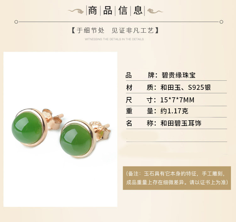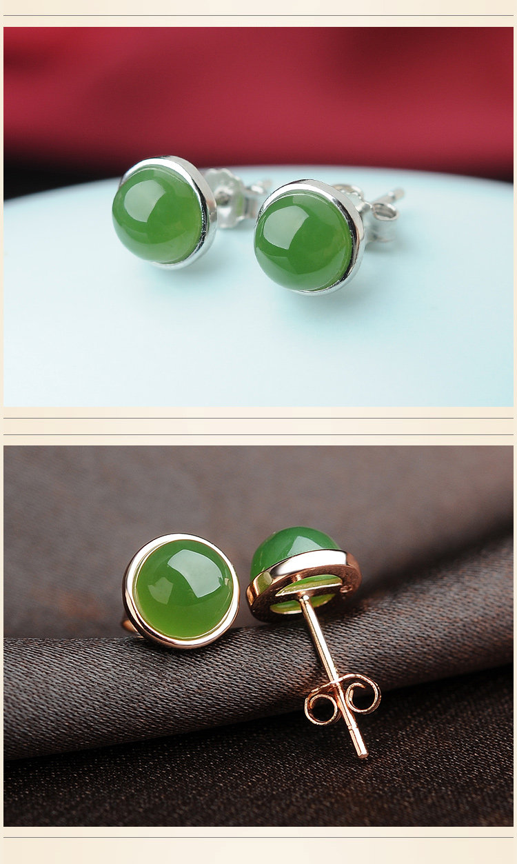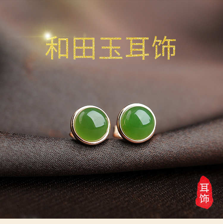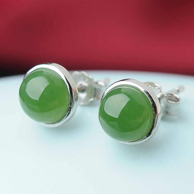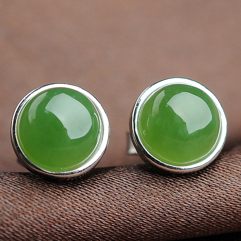 碧贵缘 Яшма из округа Хотан, серьги, природная руда из нефрита, серебро 925 пробы
