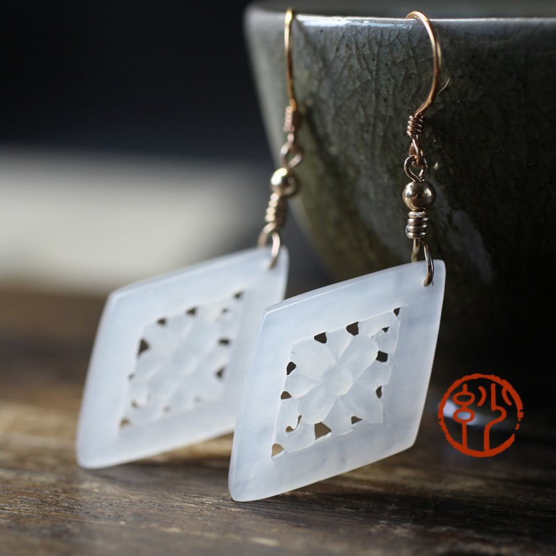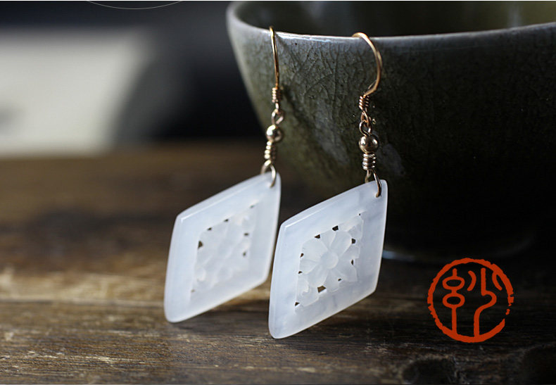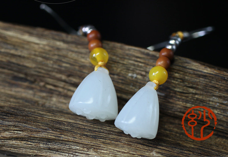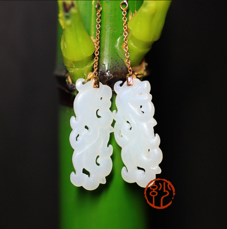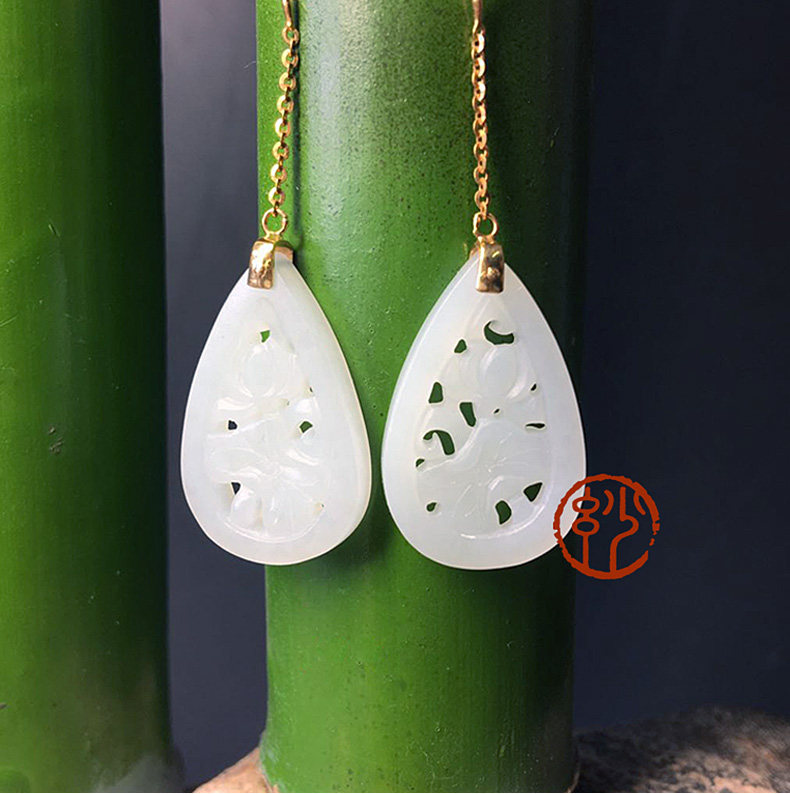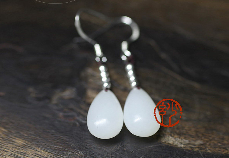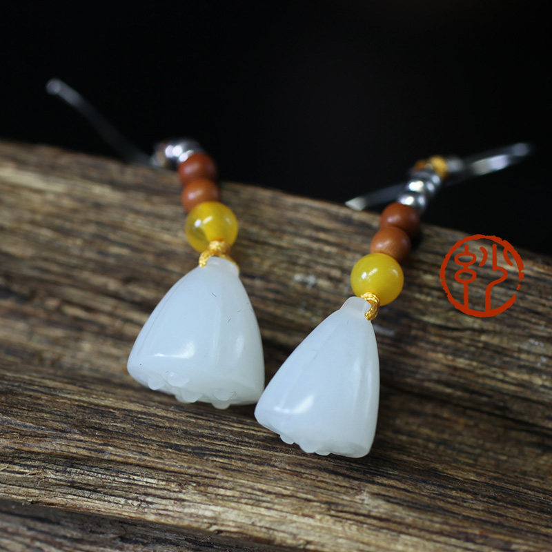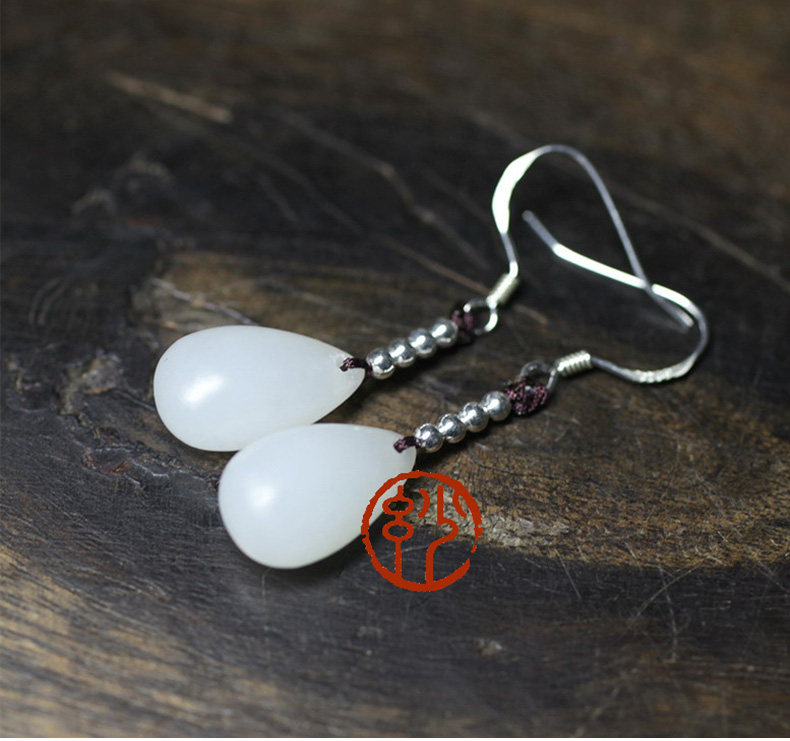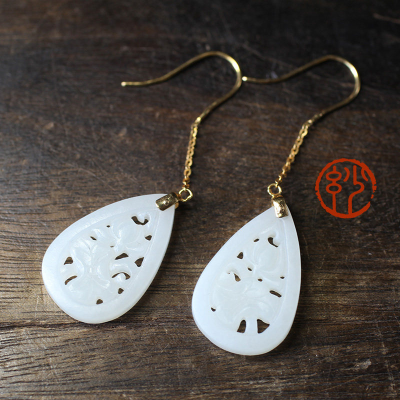 妙舍 Серьги из белого нефрита, китайский стиль