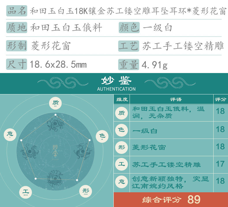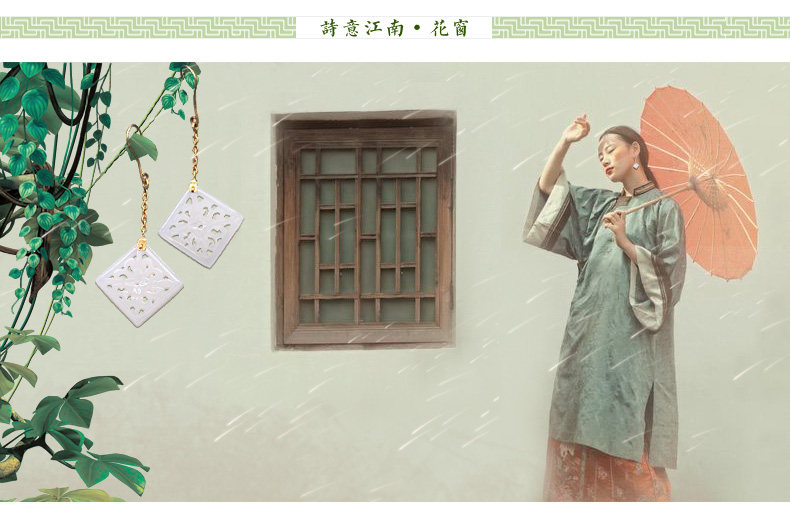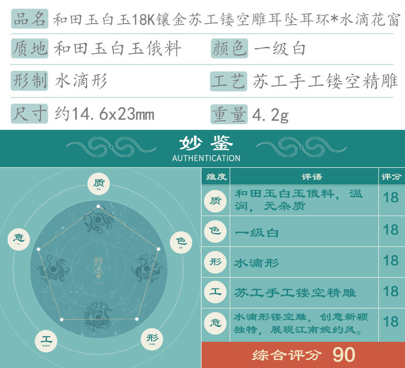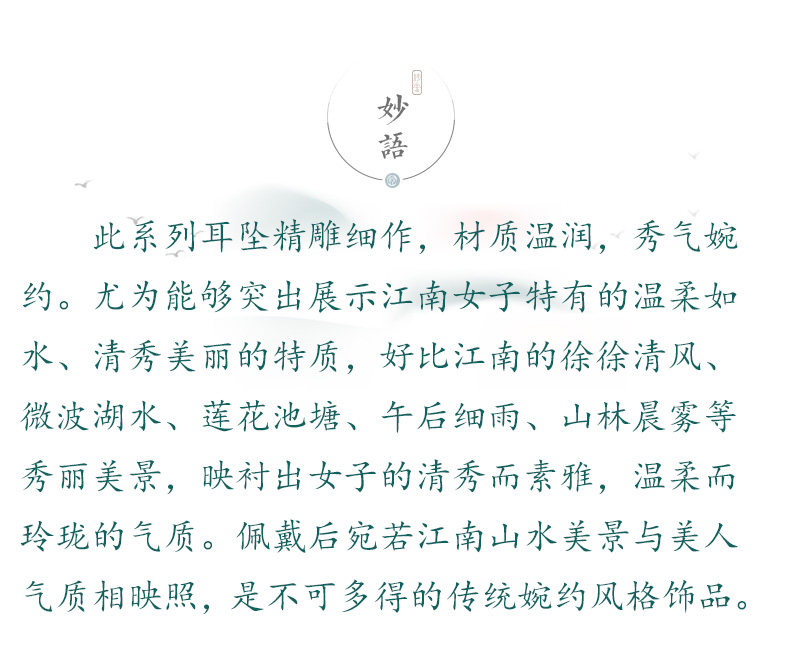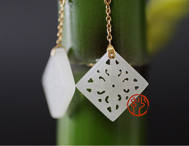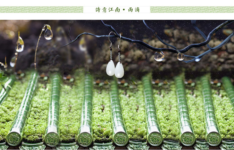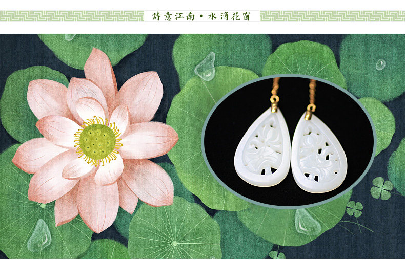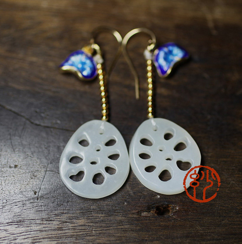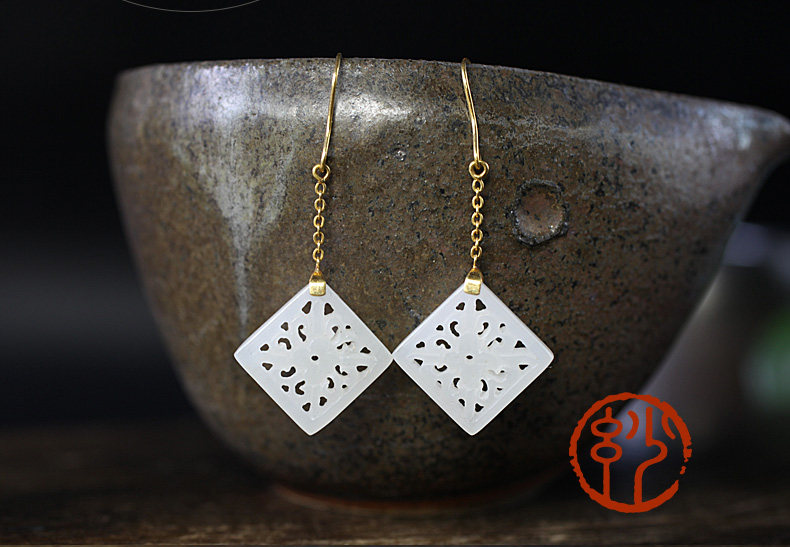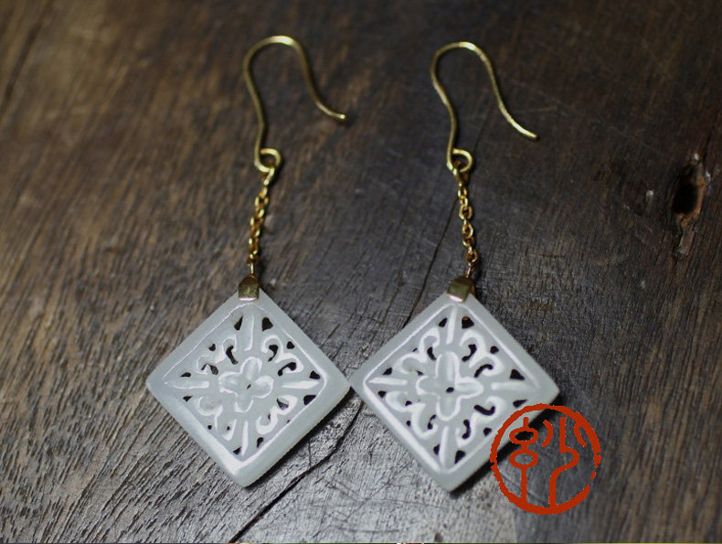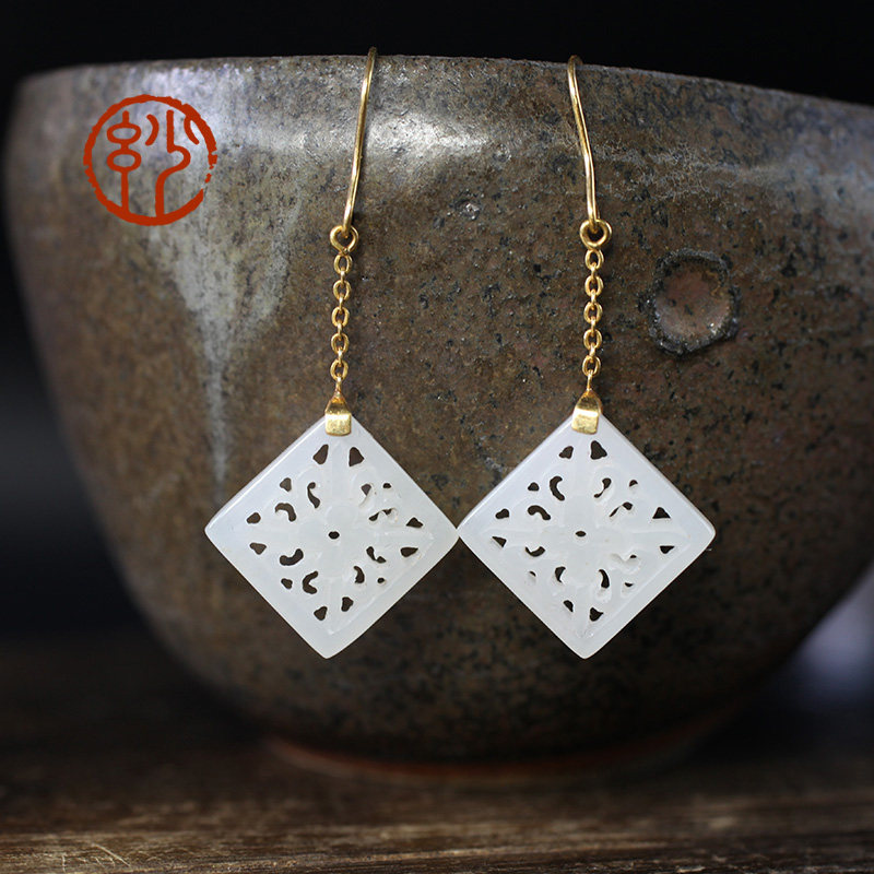 妙舍 Серьги из белого нефрита, китайский стиль