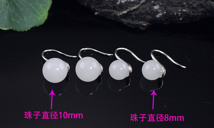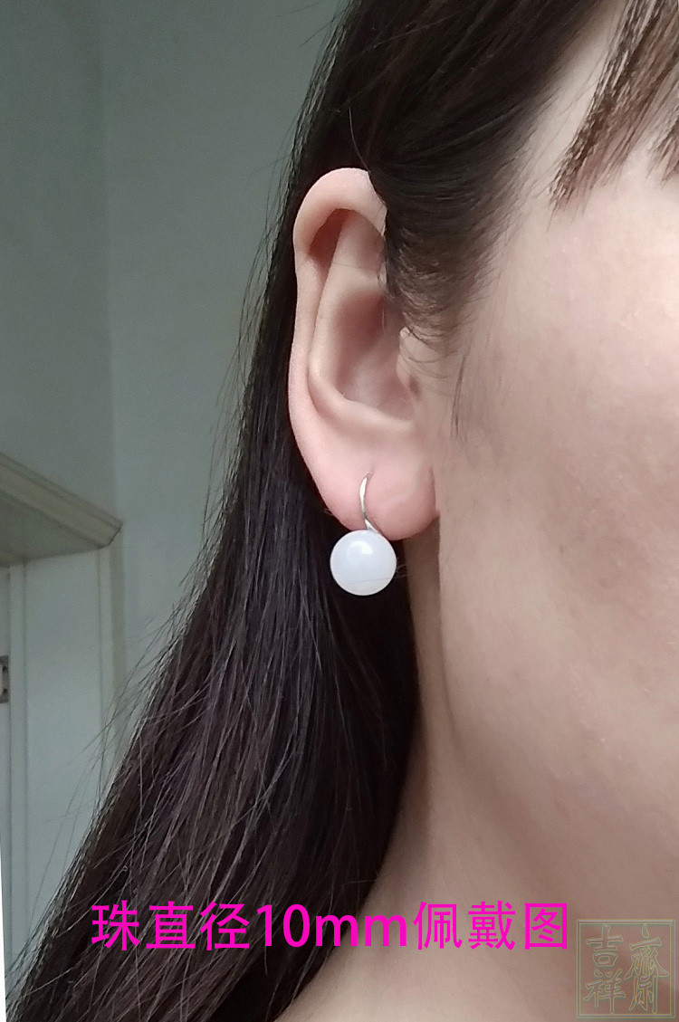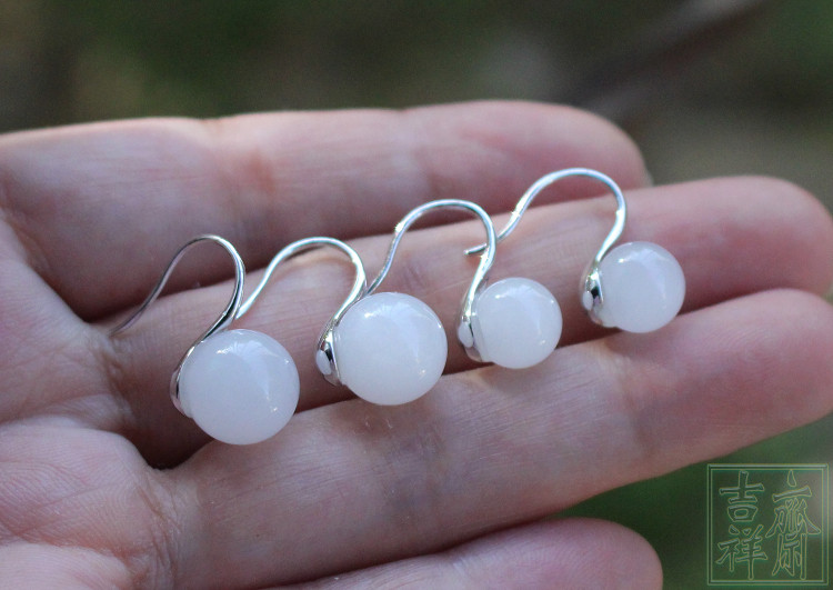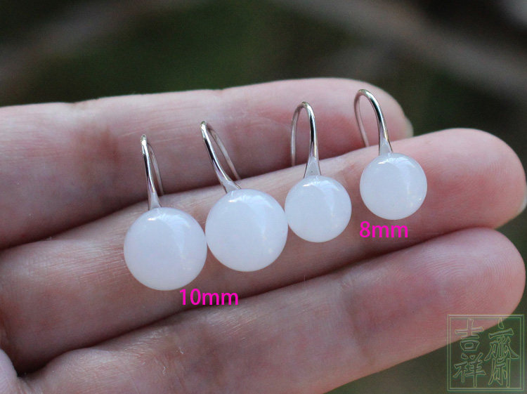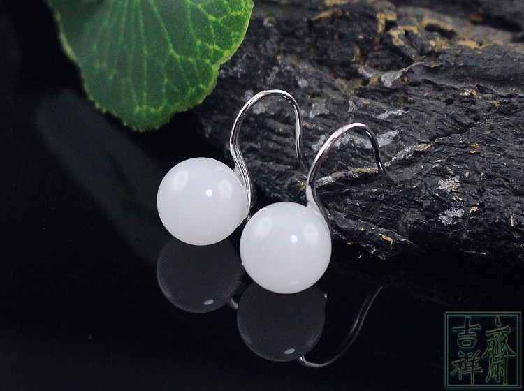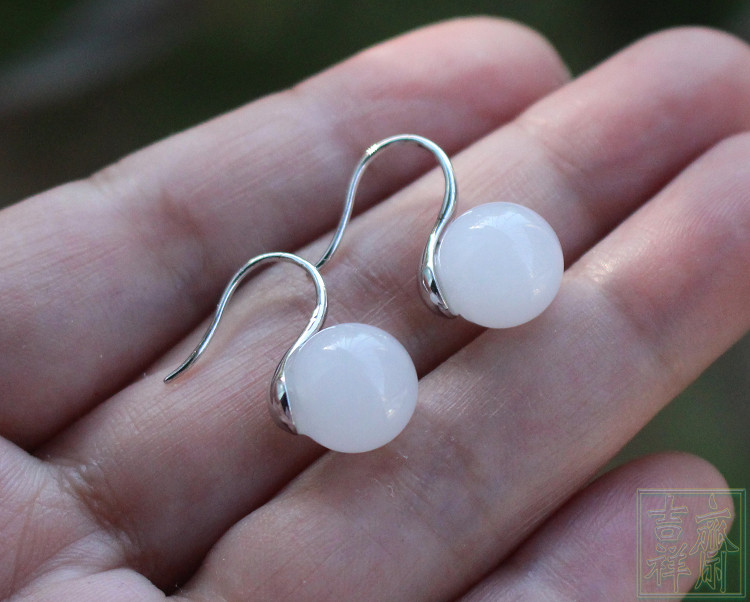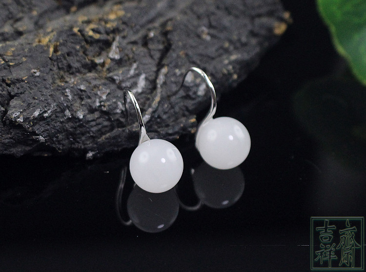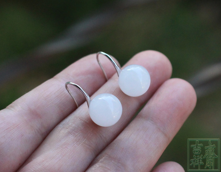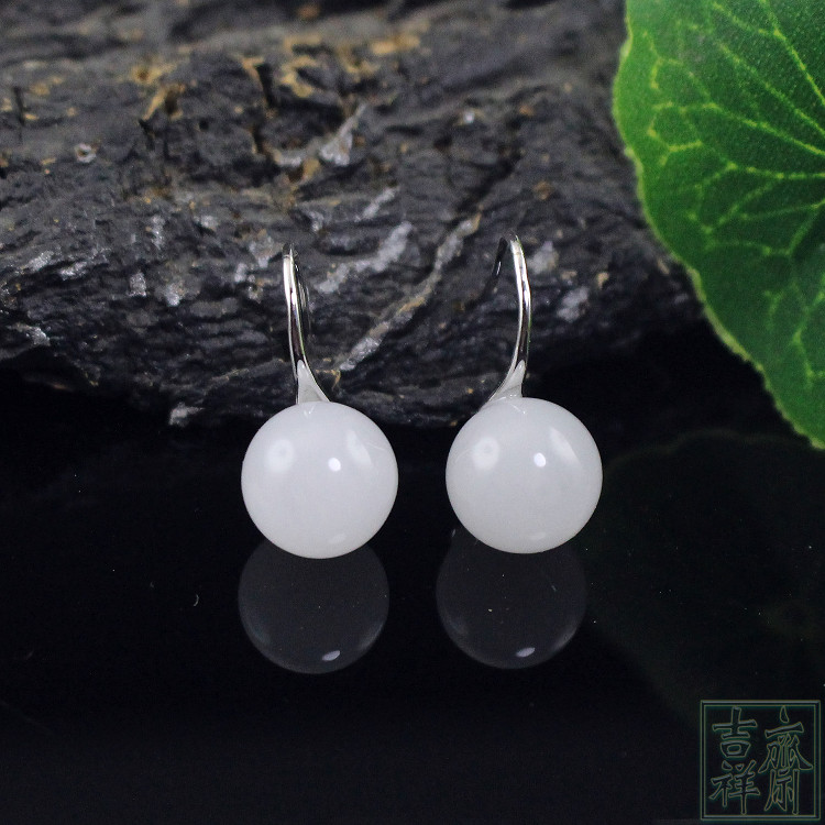 Белые серьги из белого нефрита, свежее короткое украшение-шарик из нефрита, серебро 925 пробы