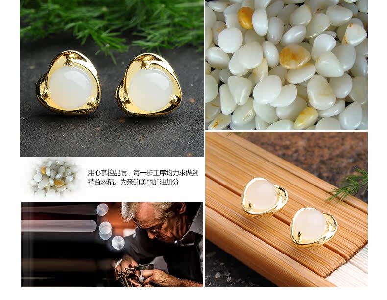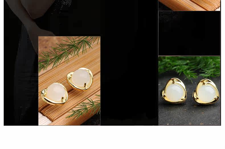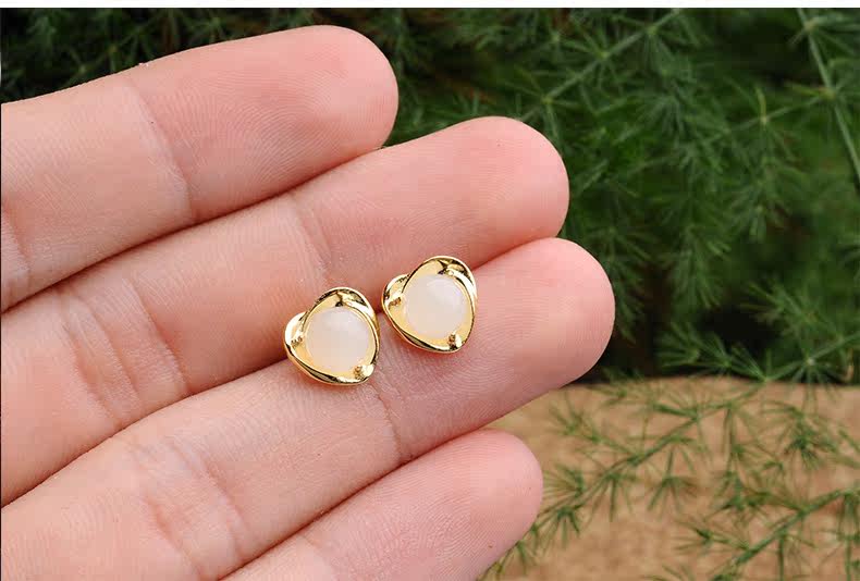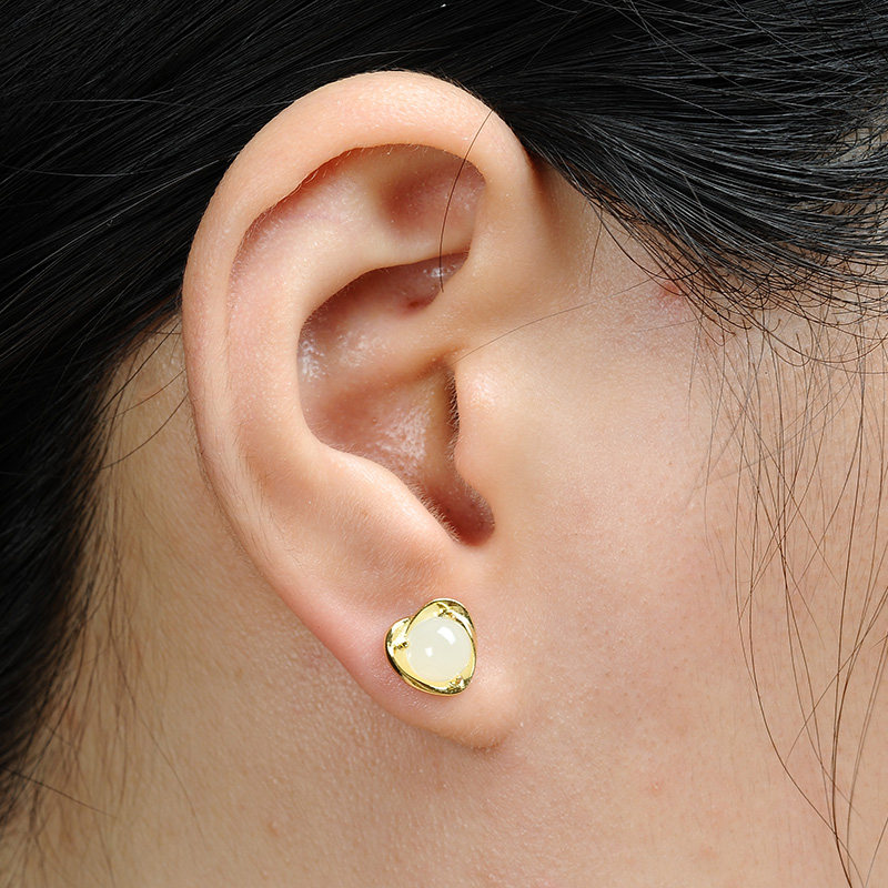 荔尚 Ювелирное украшение из нефрита, серьги в форме сердца, инкрустация камня из белого нефрита, женский стиль, серебро 925 пробы