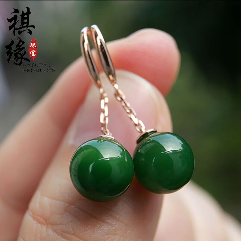 Украшение-шарик из нефрита, серьги, золотая яшма для скульптурирования лица, женский стиль, 18 карат, розовое золото