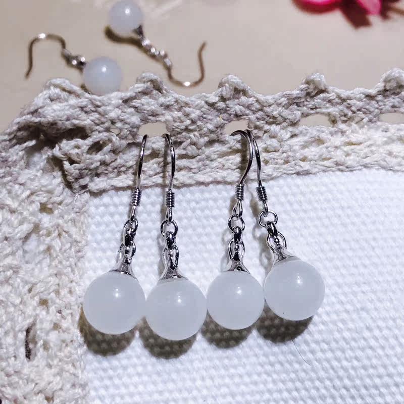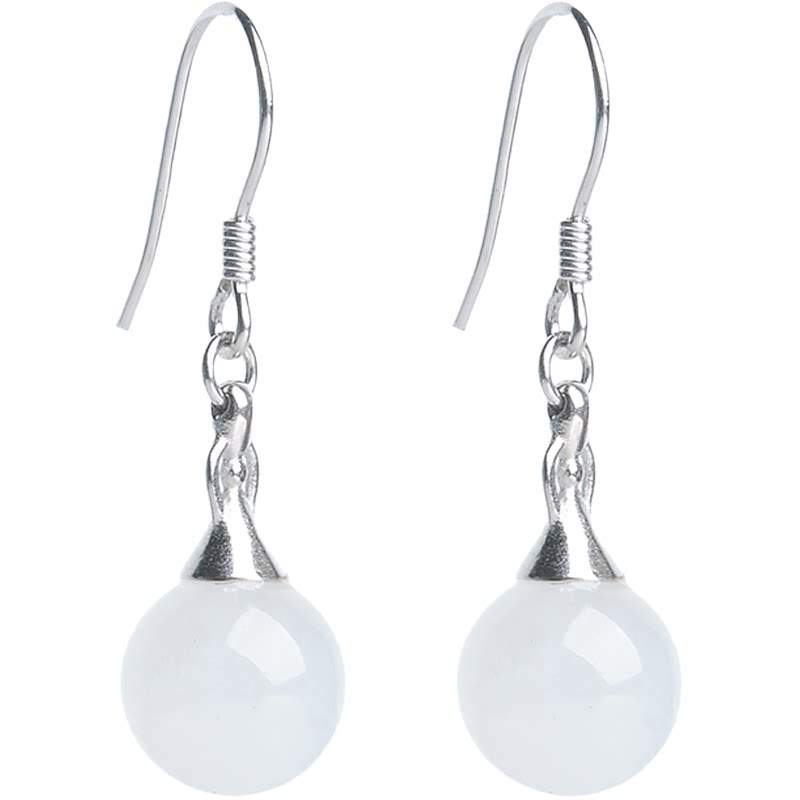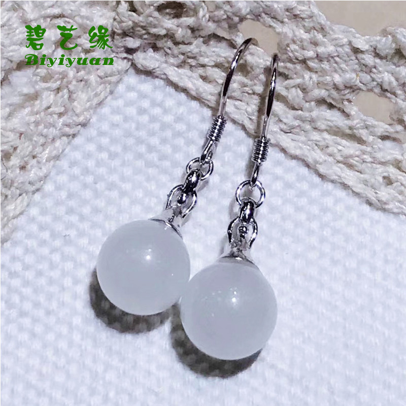 Серьги из белого нефрита, ювелирное украшение, серебро 925 пробы
