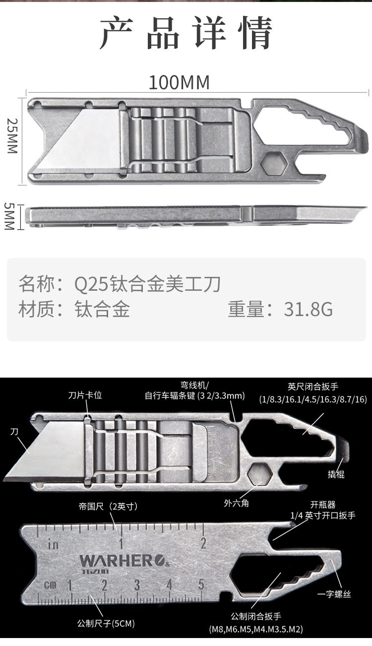 Титановый сплав -сплав Трапециальный нож Многофункциональный EDC Красота -работник.