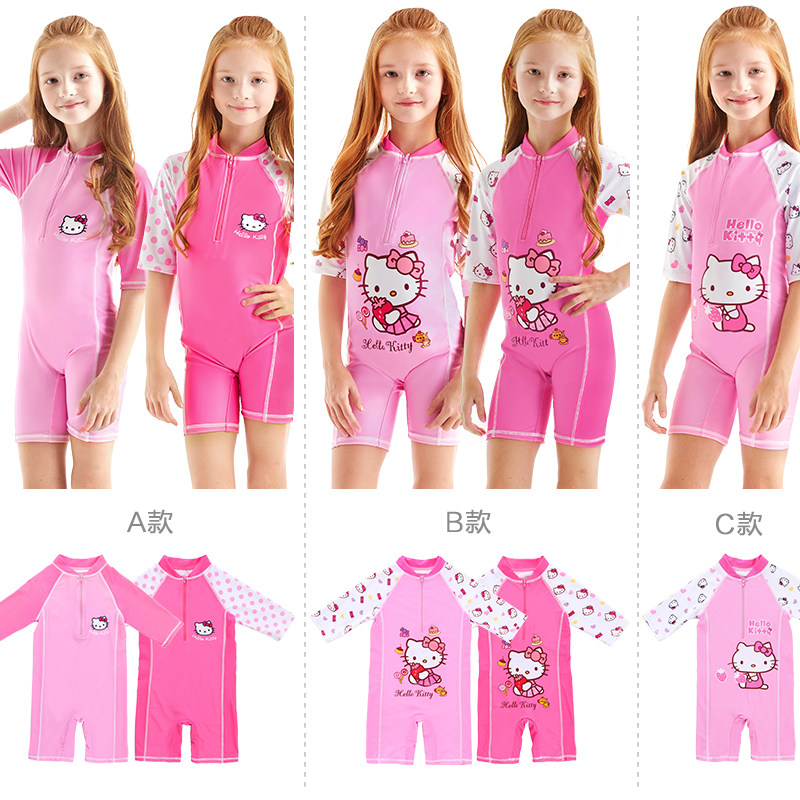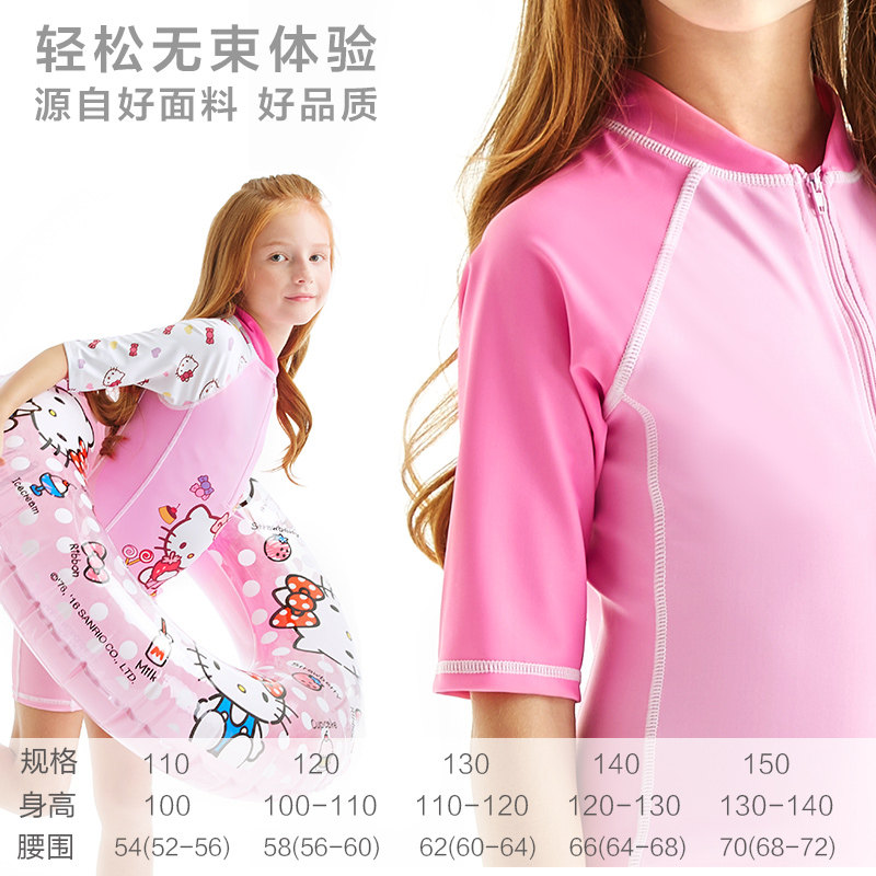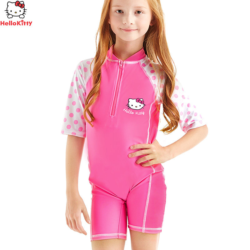 Hello kitty, детский быстросохнущий купальник для школьников, короткий рукав, подходит для подростков