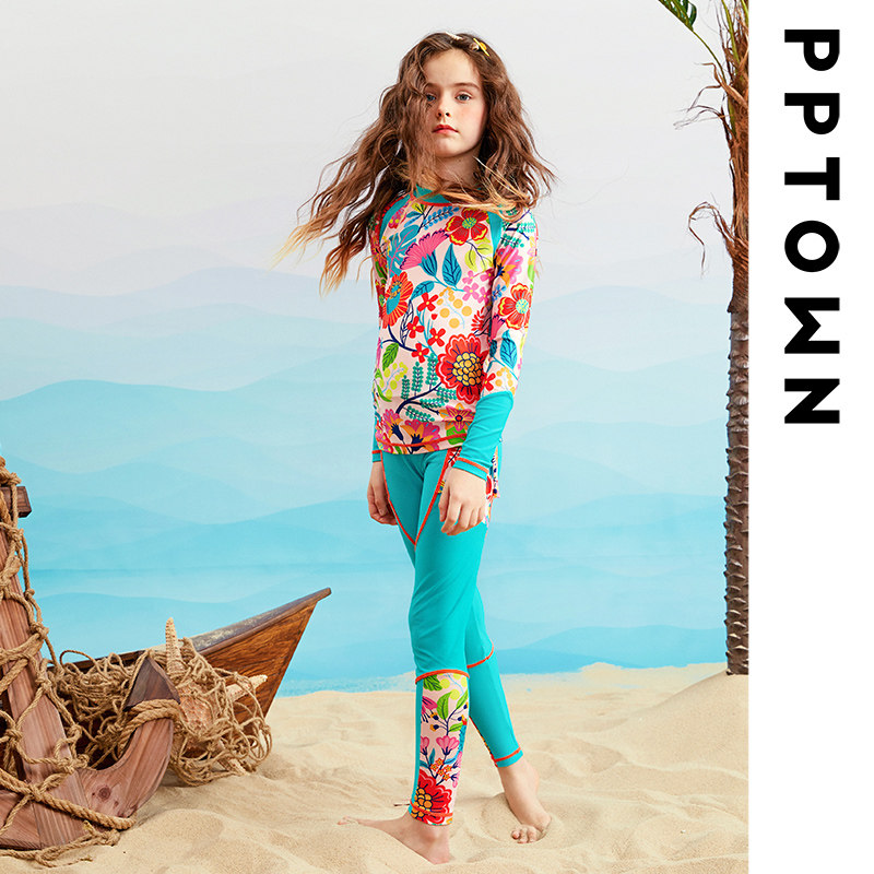 Купальник, детский раздельный быстросохнущий летний лонгслив, в западном стиле, подходит для подростков, защита от солнца