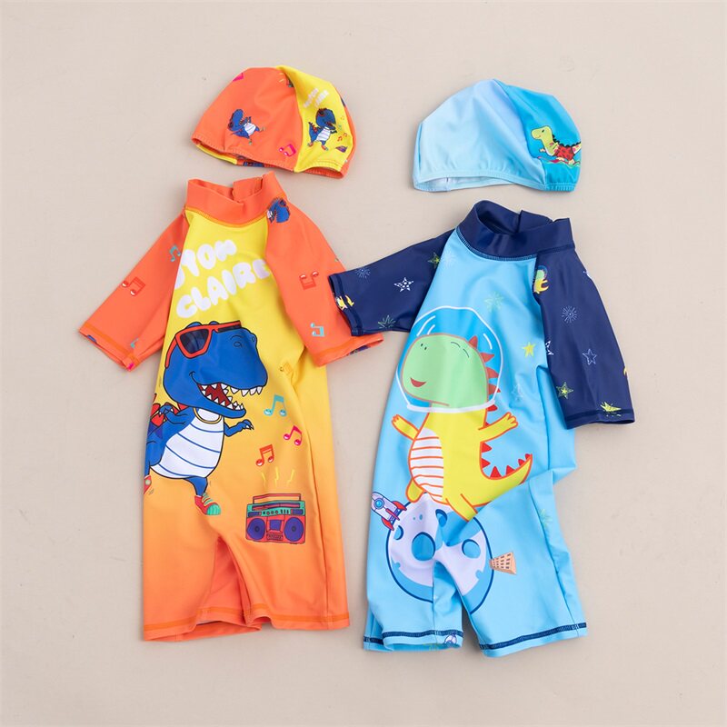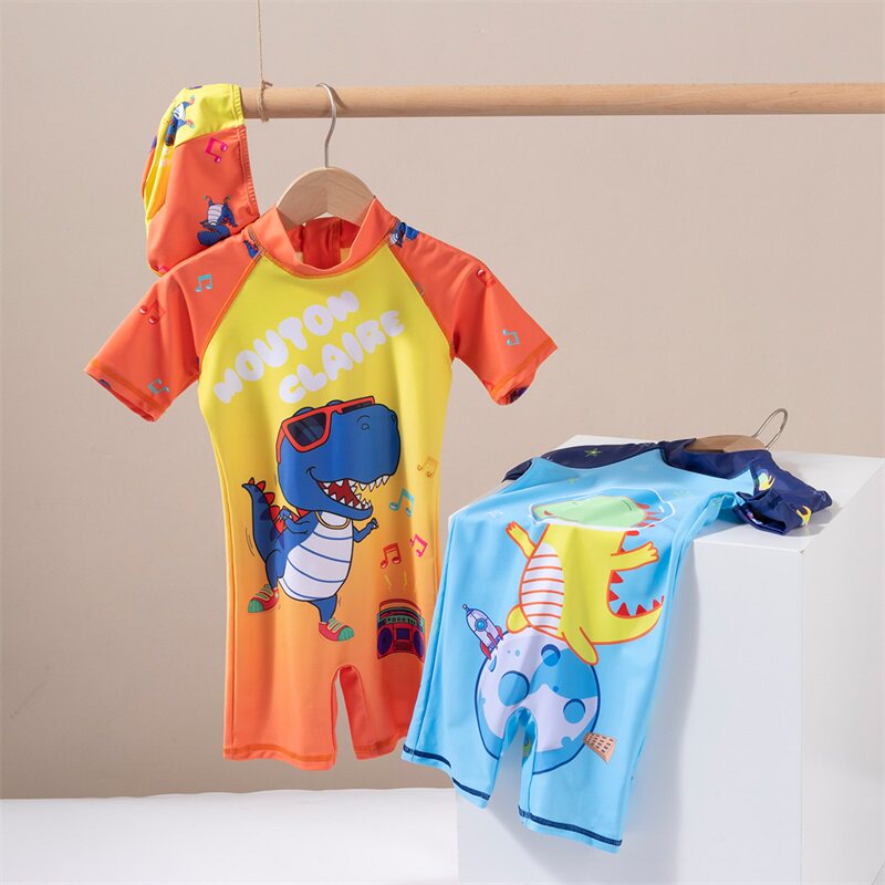 Детский купальник, комплект, боди, детская летняя плавательная шапочка для плавания для мальчиков, короткий рукав