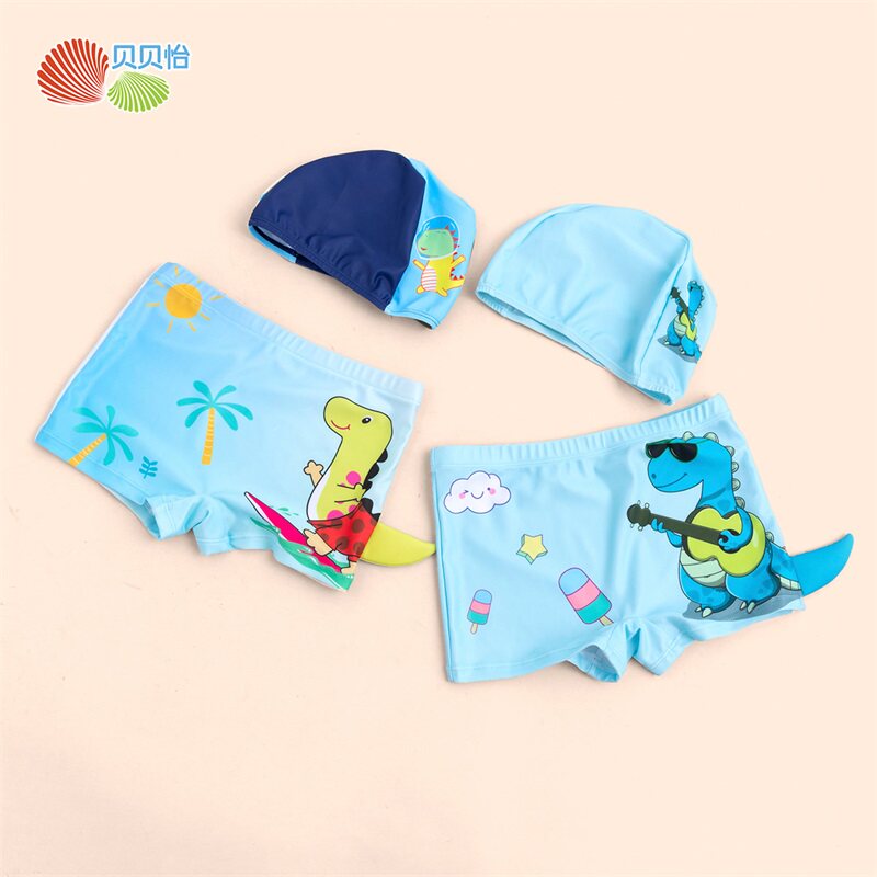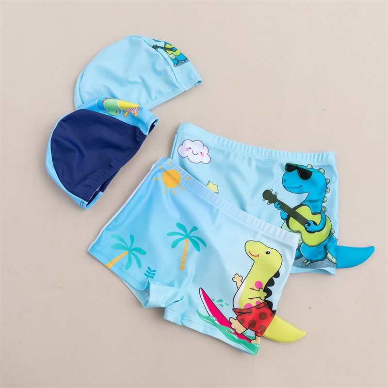 Детская плавательная шапочка, летние штаны, купальник для мальчиков, детский комплект, 2 шт