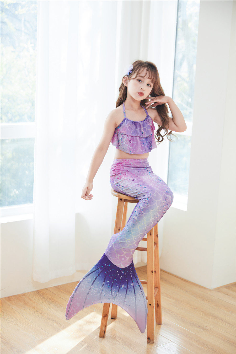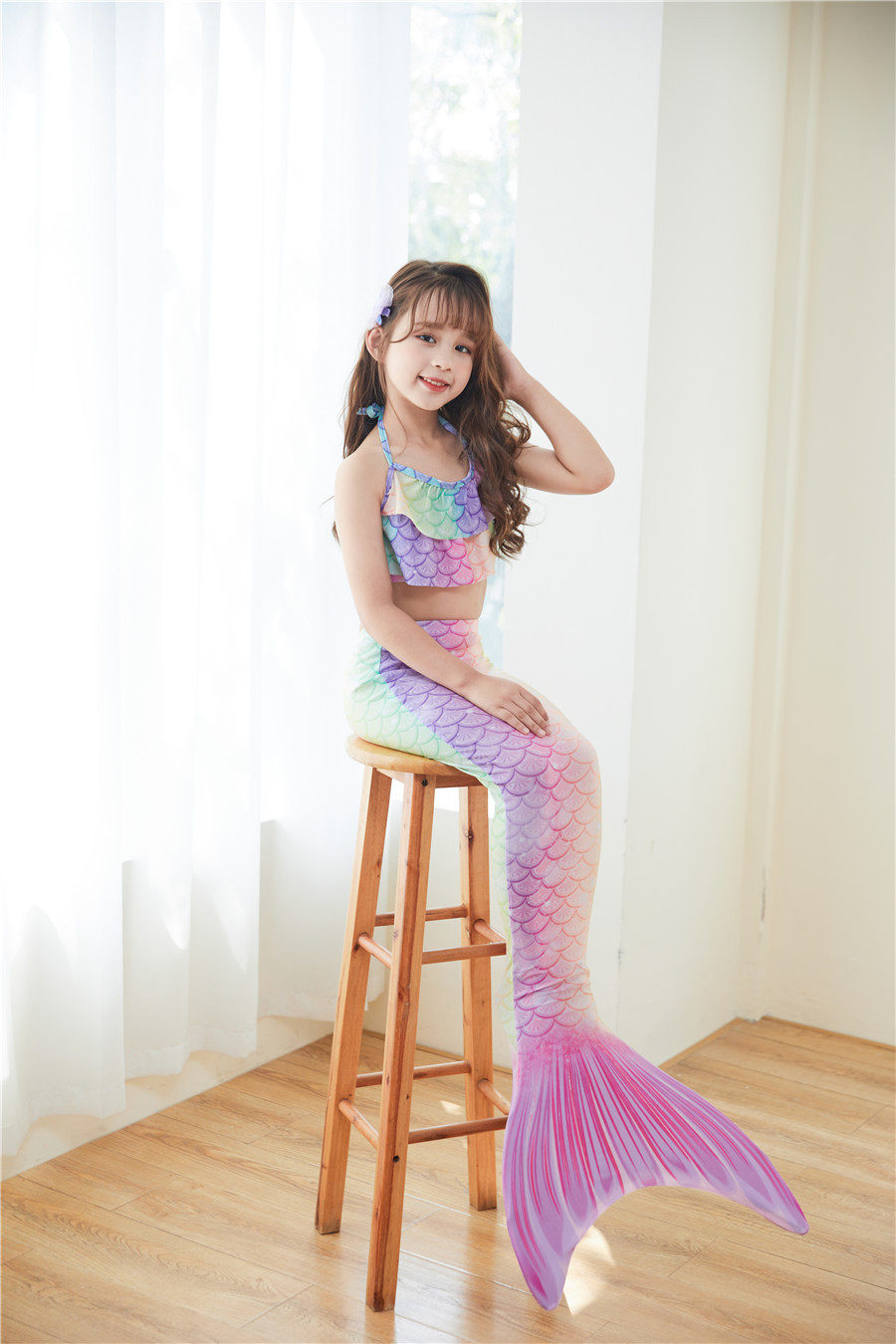 Милый раздельный детский купальник, наряд маленькой принцессы, крой «рыбий хвост», подходит для подростков