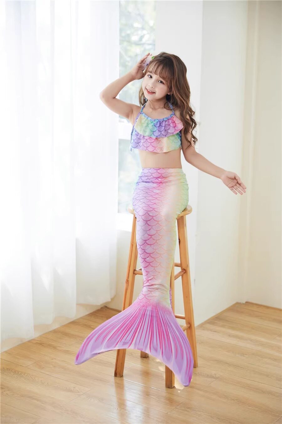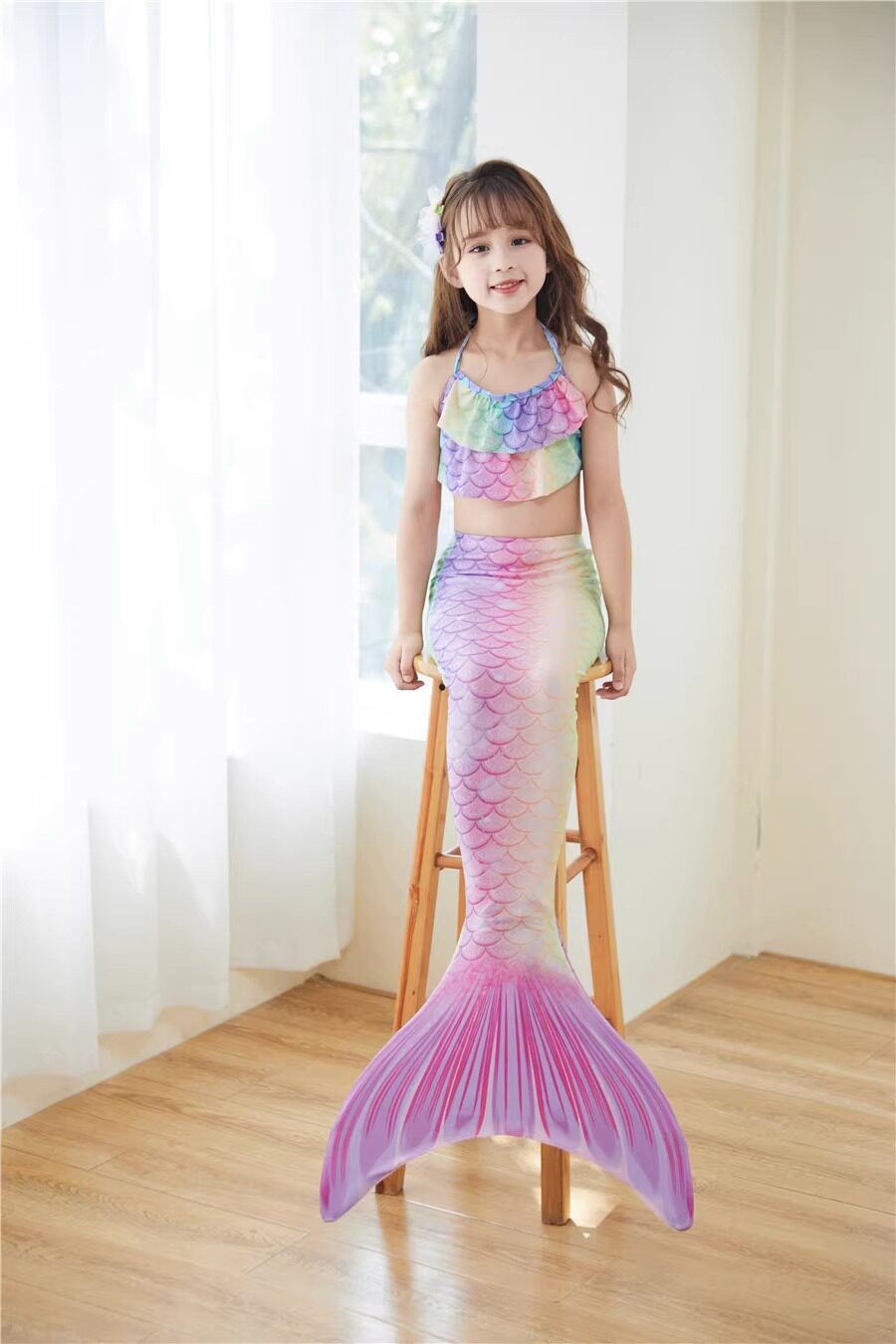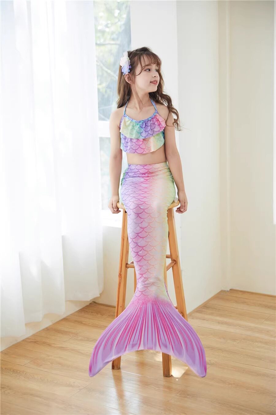 Детский купальник, комплект, наряд маленькой принцессы, 3 предмета, крой «рыбий хвост»