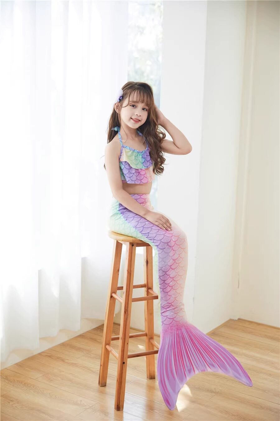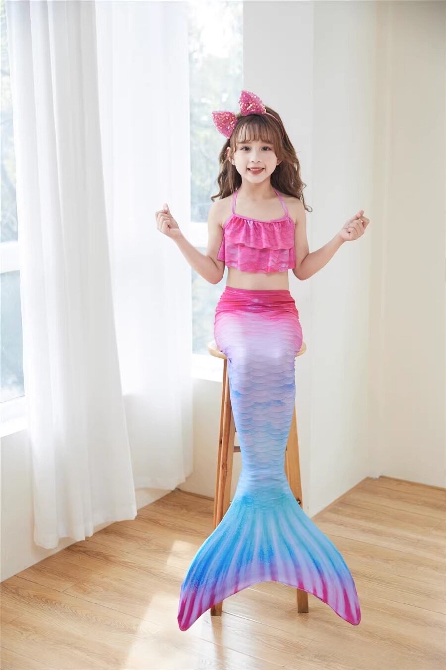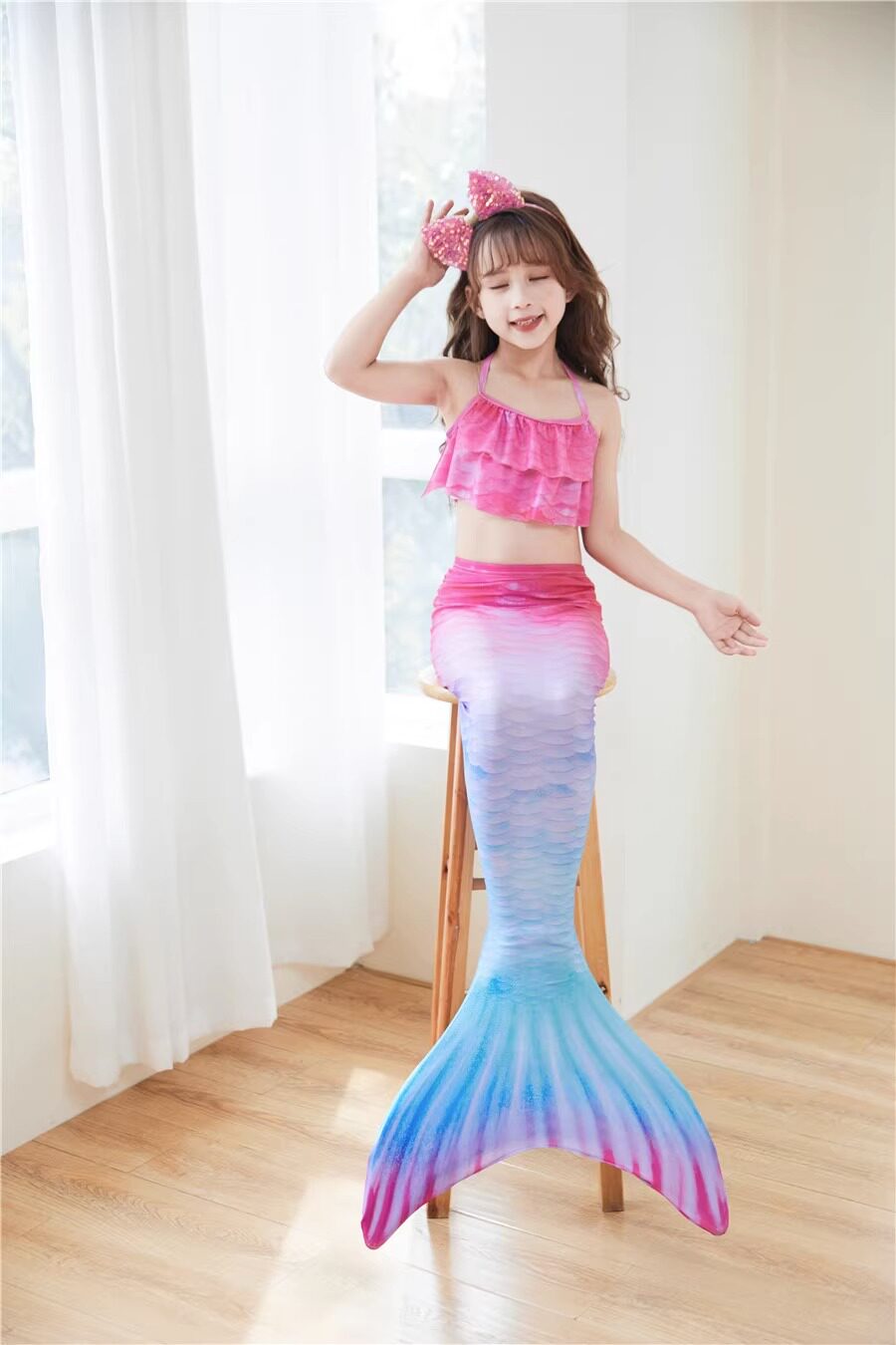 Детский купальник, комплект, наряд маленькой принцессы, 3 предмета, крой «рыбий хвост»