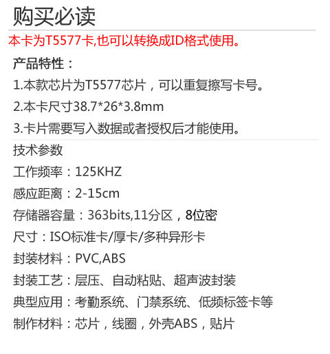 Новый T5577 Card Hotel Door Door Card Id Card Card Card может быть многократно писать в виде удостоверения личности