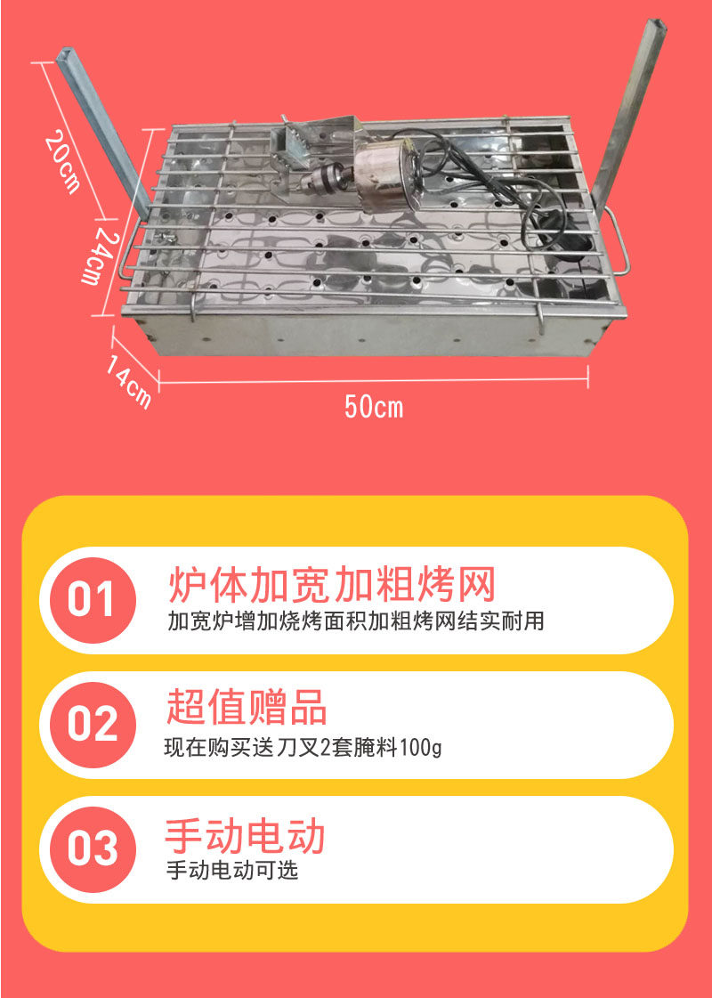 Три -набор включает в себя: (железо (1,1 мм) и нержавеющая сталь (1,5 мм))) плита ягненка+вывески ног ягненка (деревянная ручка стальной ручки)+гриль из нержавеющей стали (50*26 см)