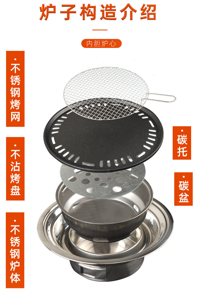 Корейская плита для барбекю из нержавеющей стали -Бесплатная стола для барбекю Складывание не -старичного горшка круглый барбекю из карбоновой бумаги Гриль.