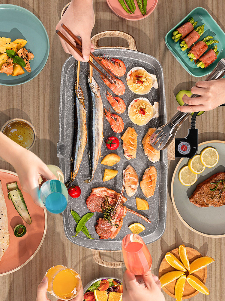 Корейская стиль без курящего барбекю, обготовленная многофункциональным электрическим выпечкой.