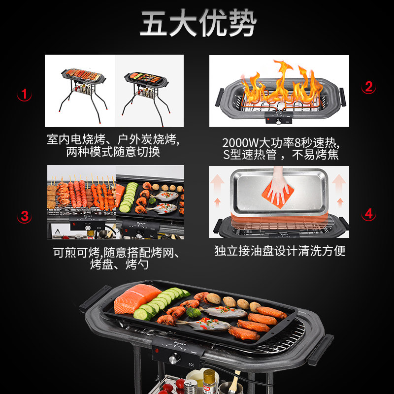 Большой электрическая запеченная духовая печь для барбекю для барбекю без кастрюли на гриле на гриле, на гриле, Электрическая уголь, два пользователя на гриле на гриле, машина для барбекю на гриле