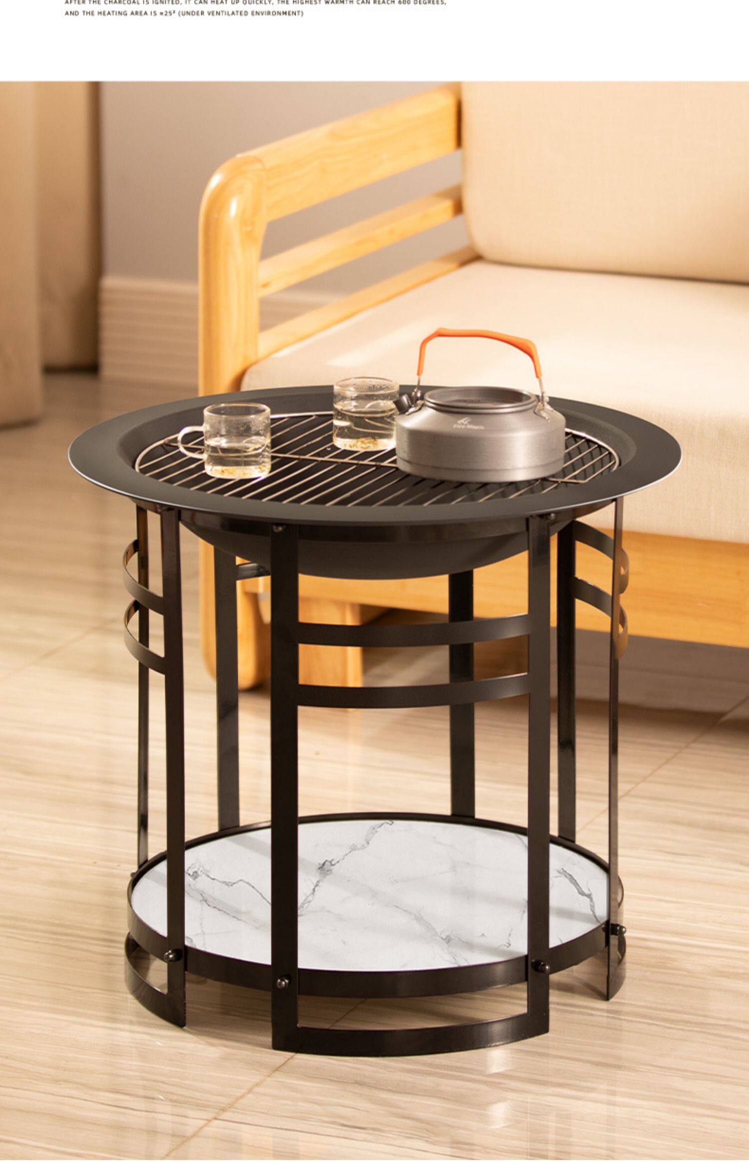 На открытом воздухе столик для барбекю в помещении для обогрева
