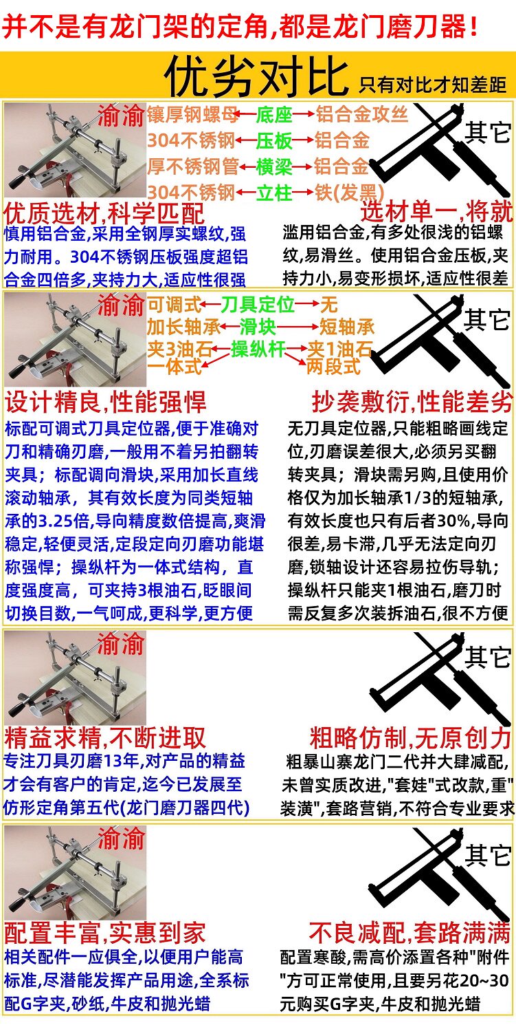 Использование технологии углового зажима является более стабильной и может адаптироваться к большему количеству нефтяных камней.2-3 типа масла/алмазов требуются при измельчении ножа. При проверке прогресса вам также необходимо переключаться между толстым и тонким шлифованием. Если вы держите три корня за раз, вы можете переключаться между тремя нефтяными камнями/бриллиантами. Удобство.