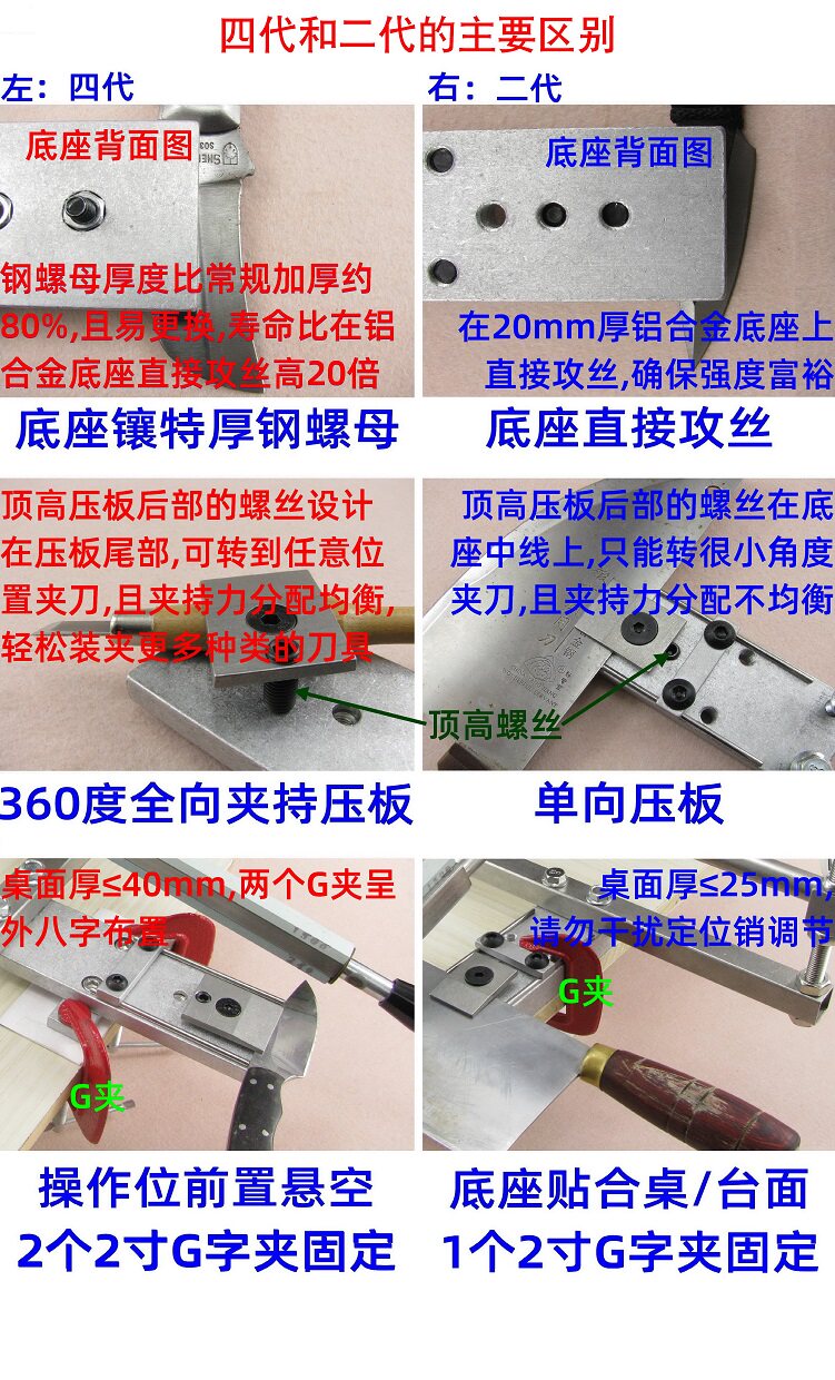 В -третьих, базовый дизайн подвеса, двойной g -образный зажим фиксирован——Эластичная защита улучшает эффект шлифования лезвий, адаптируется к более толщему рабочему столу и фиксированная более надежная!