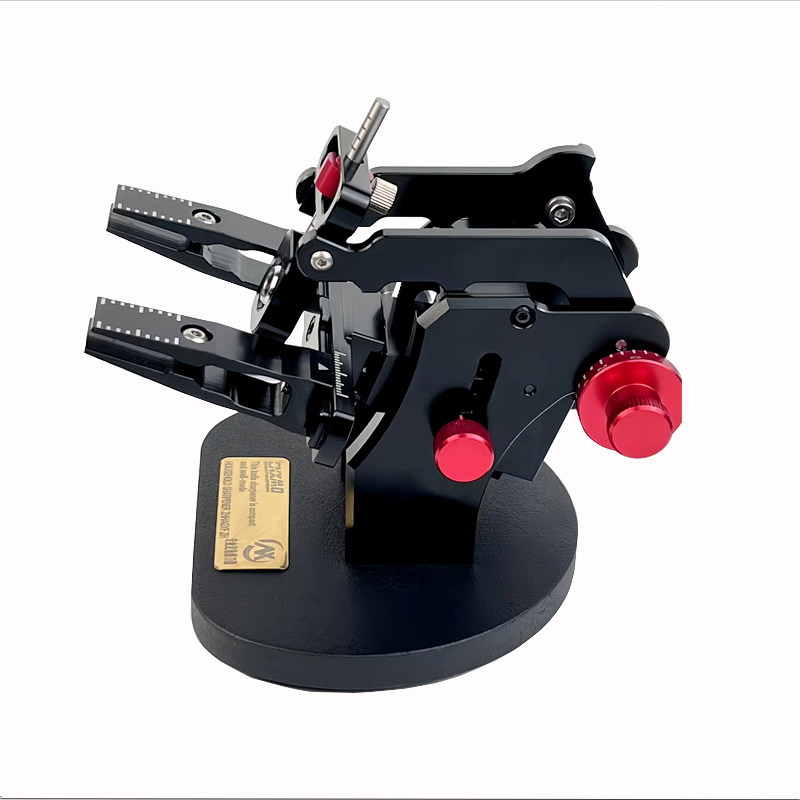 Руководитель абразивной стойки изготовлен из стали.Передача абразивной стойки, вала и ограничителя изготовлена из алюминия, который окисляется черным анодом.Палка позволяет вам зажать абразив длиной 150 мм на бланке.