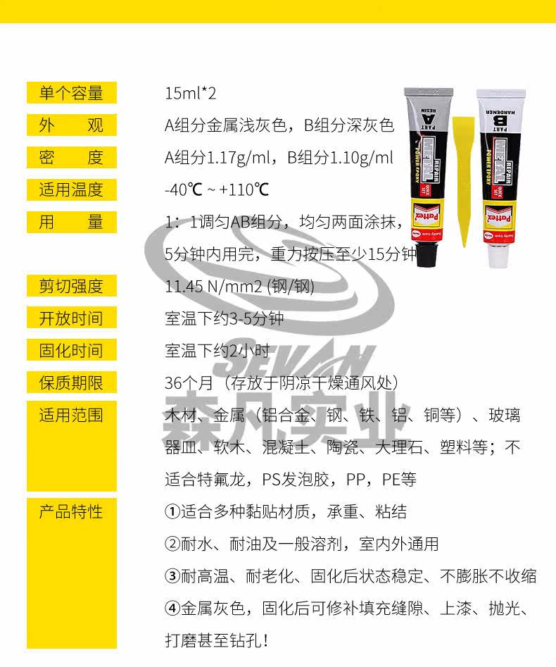 Лучший PKME15C Мощный эпоксидный клей металлический ремонт, заполненный клей, стальная стальная алюминиевая медная бетонная древесина