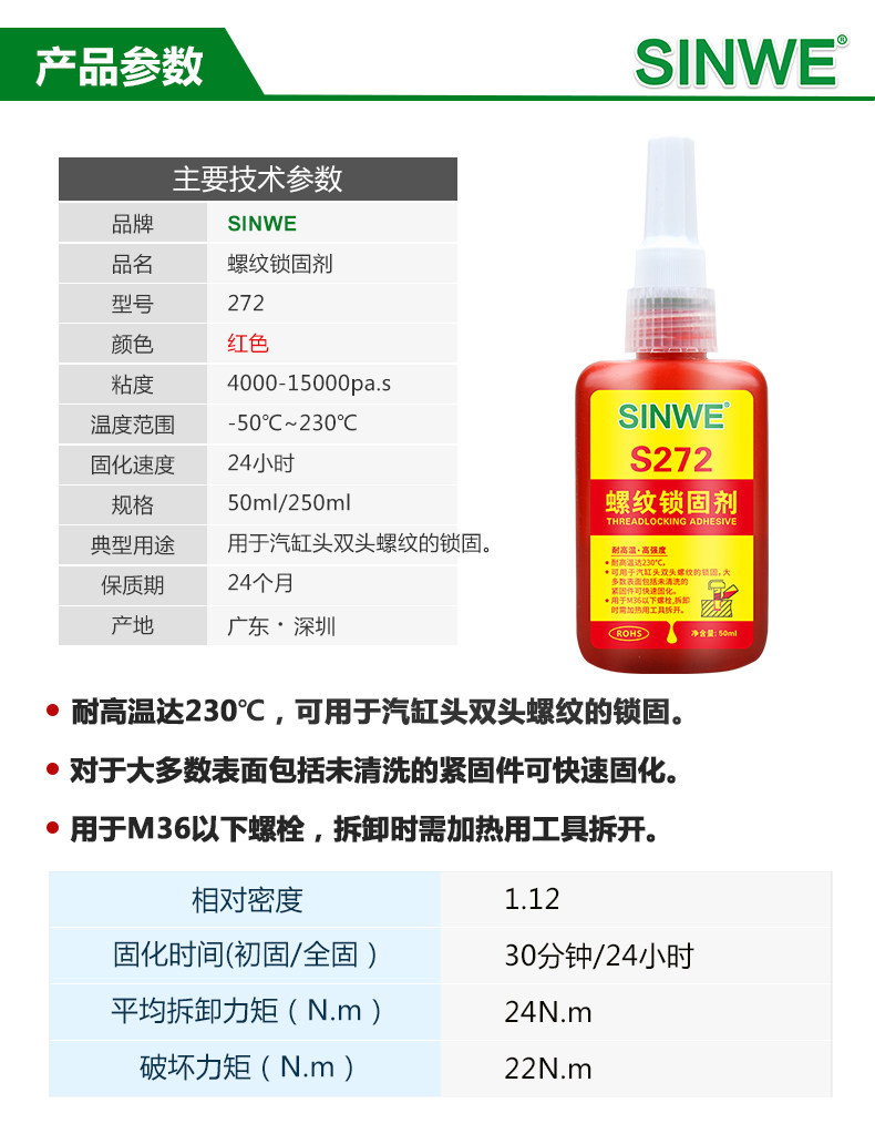 Синвей S272 резьбовой клеевой винт метал. Высокая температура высокая температура высокая температура 230 градусов длиной замк.