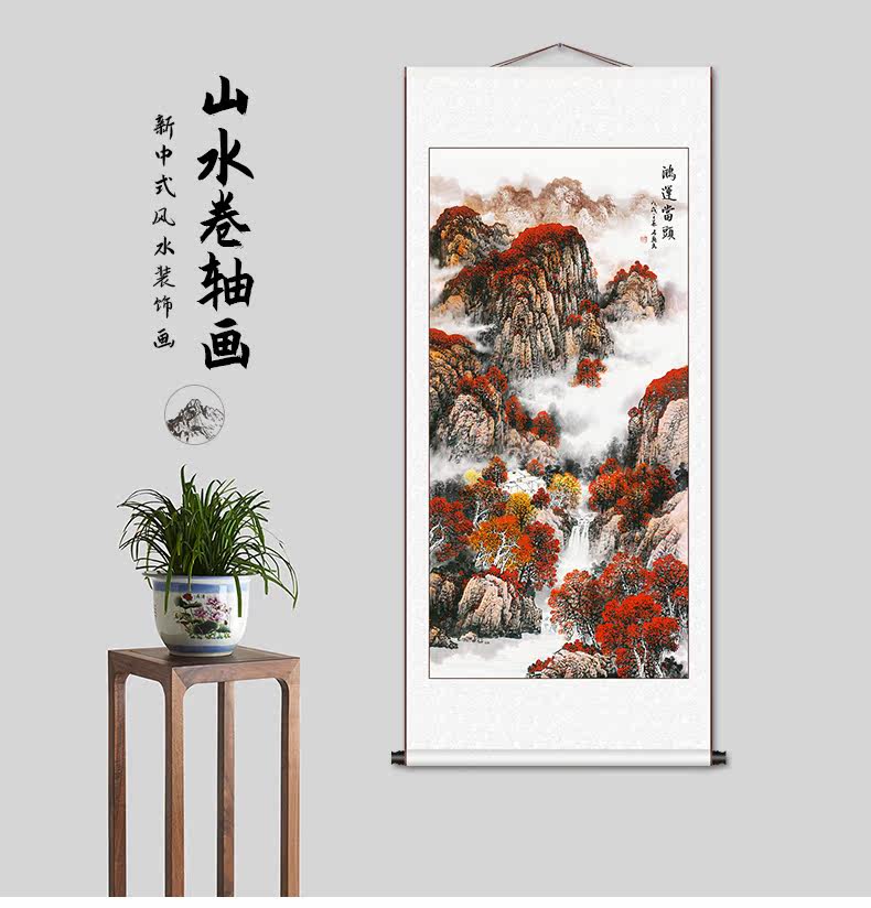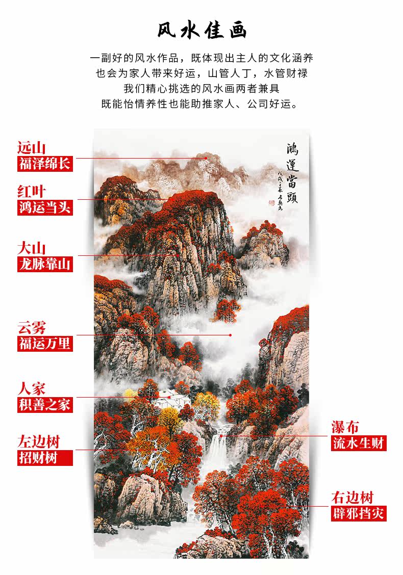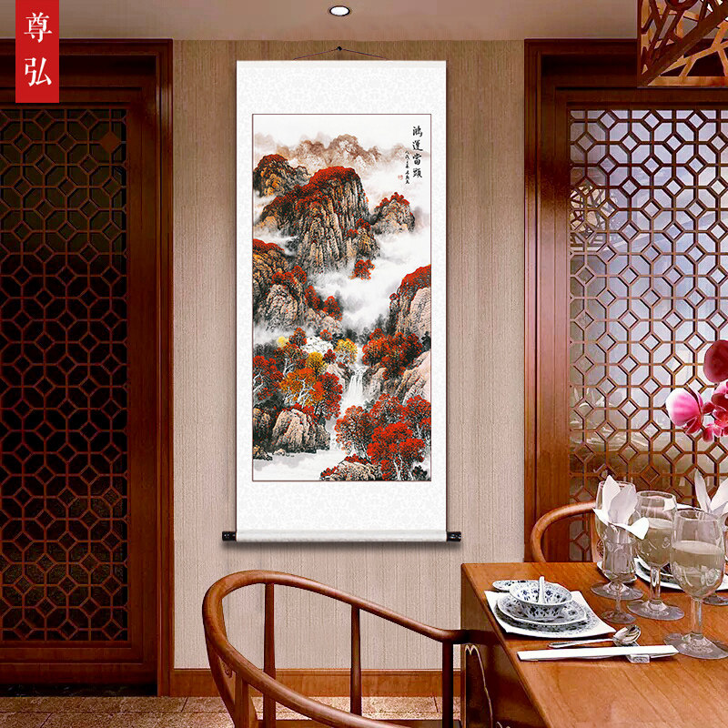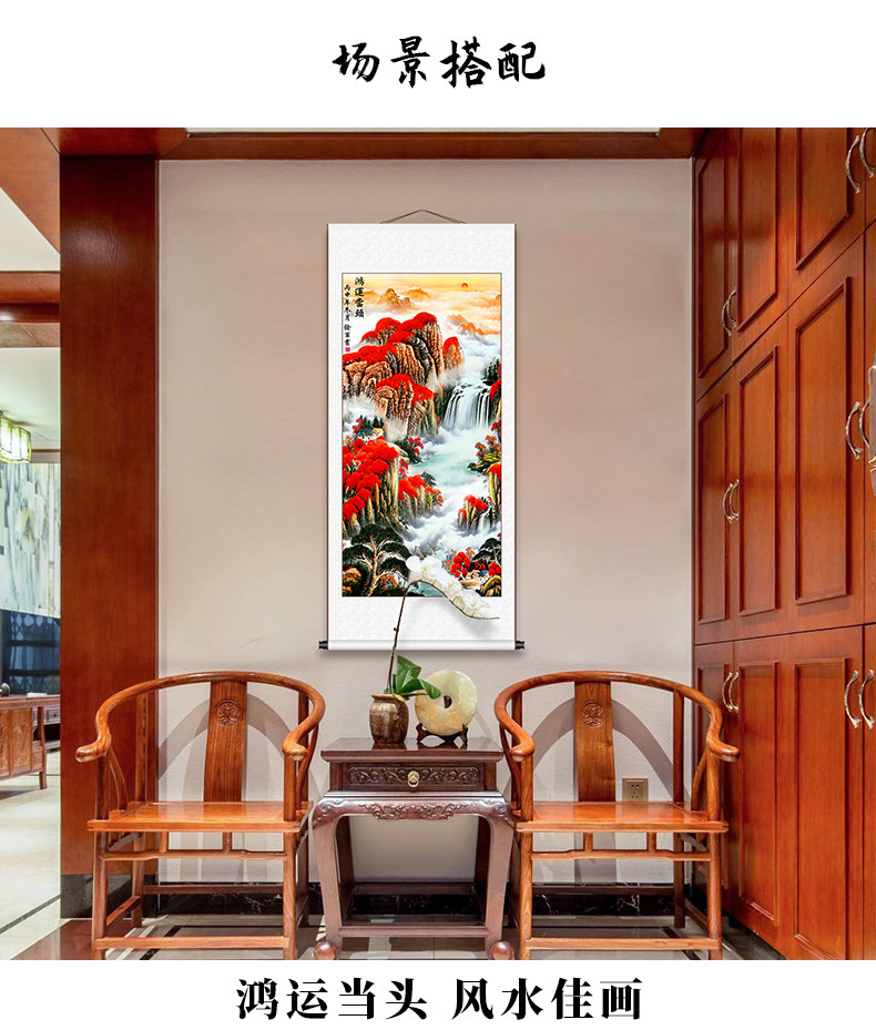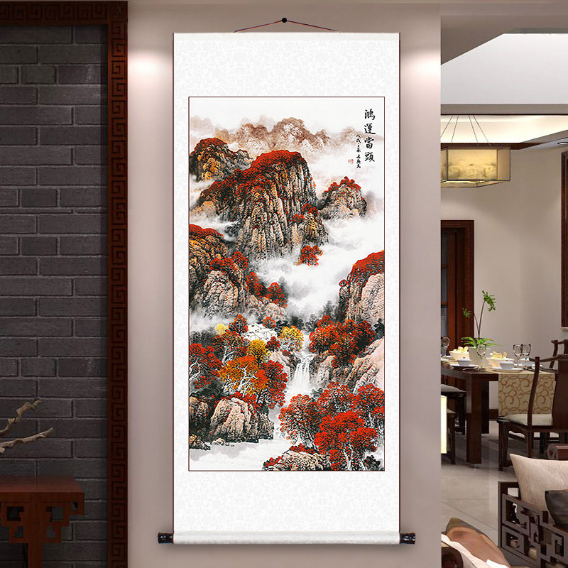 Hongyun Dangtou Китайская живопись крыльца проход проход ландшафтный свиток висячая живопись вертикальное издание Feng Shui Найдите лабораторное отделение для набора богатства