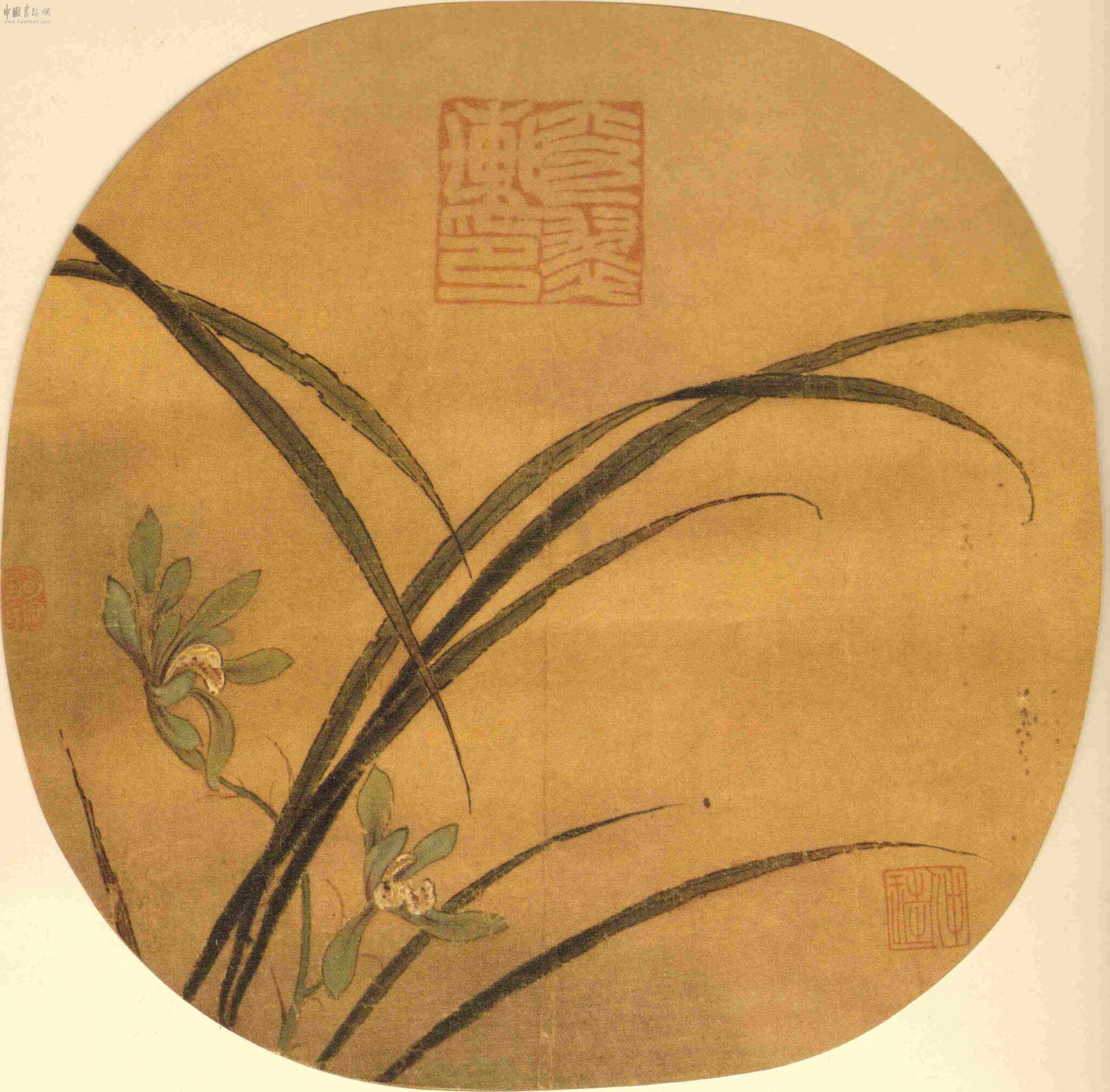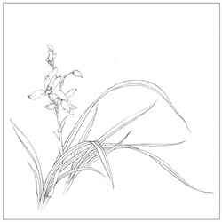 Картинка рисуется в орхидее Цю, листья орхидеи длинные и сильные, плюши орхидея, а элегантная и элегантная.Листья орхидеи окрашены двойными крючками. Мазки кисти густые и тяжелые, а лотос окрашен темно -зеленым.Композиция проста.