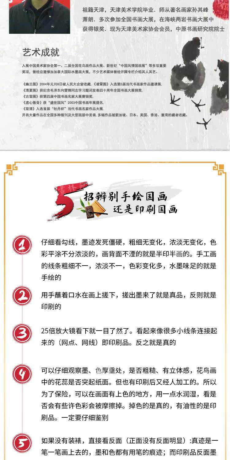 Знаменитый художник Huangshan True Hand -Painted Boutique китайский рисунок с тремя футами, чернилами, птицами, птичьим гостями ресторан декоративный