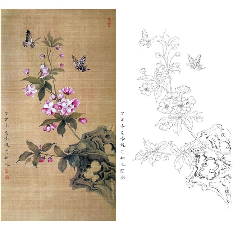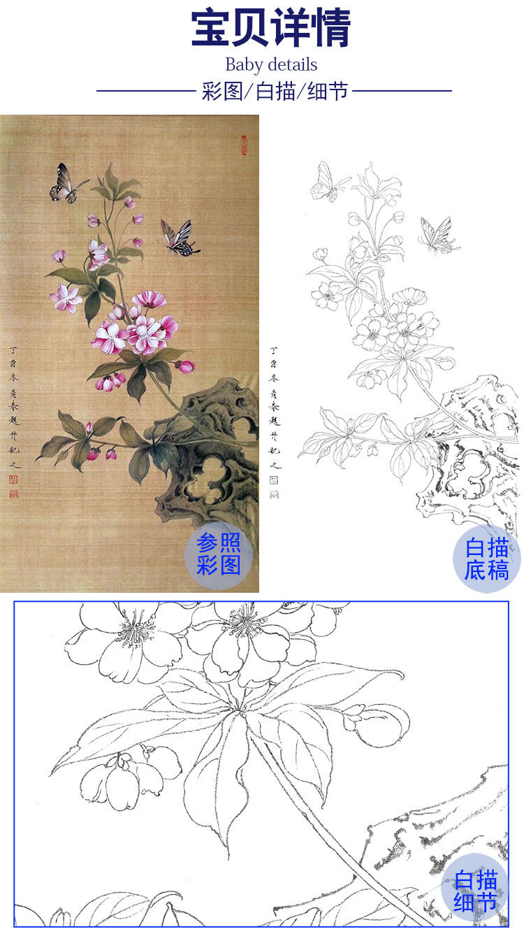 Гонгби живопись белый рисунок нижний черновик Чу Янчун Древний стиль цветочный и птичий крючок Линия Физическая печать может выбрать Cy05