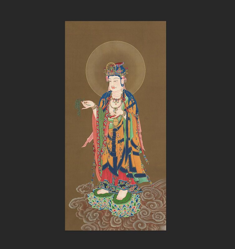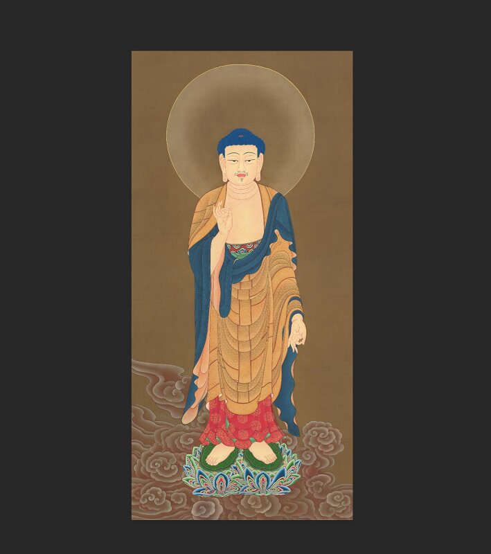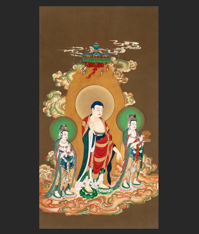 Китайская живопись Будда Статуя западных трех священного искусства Микропрей Истинная копия