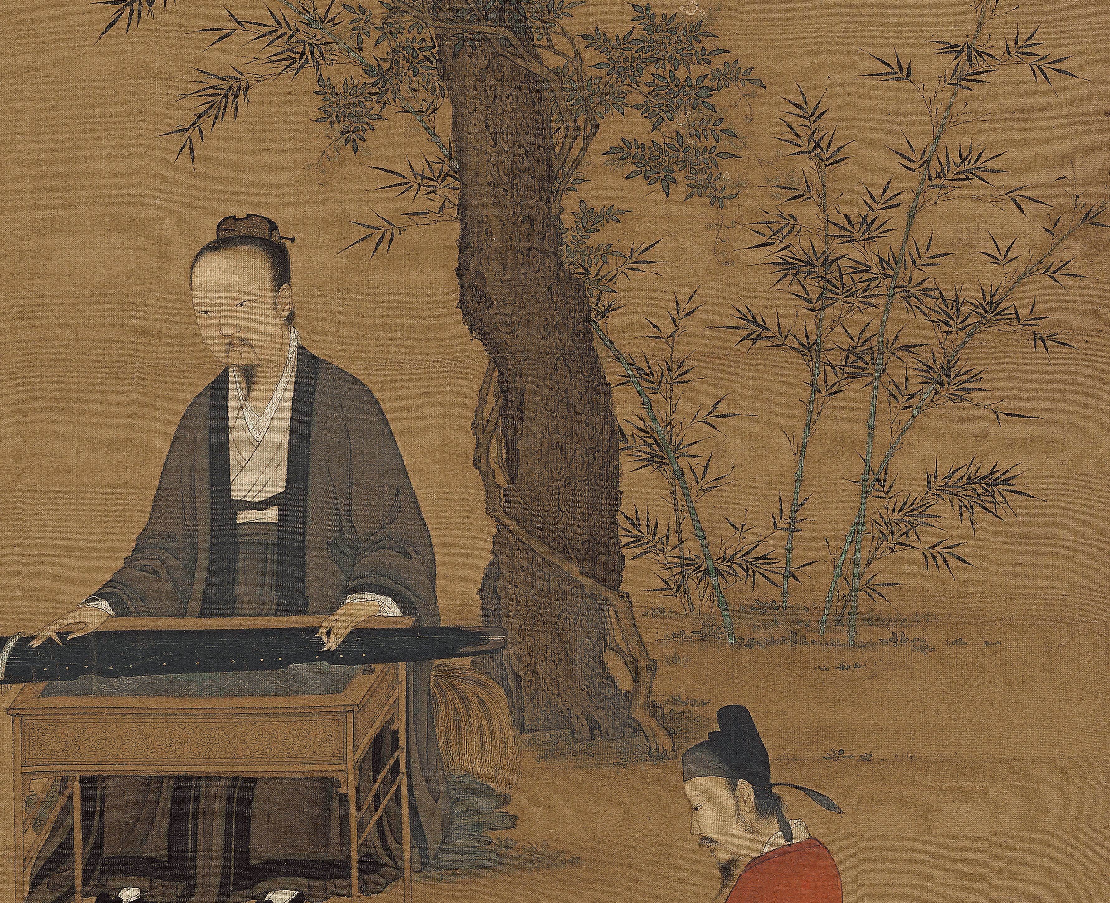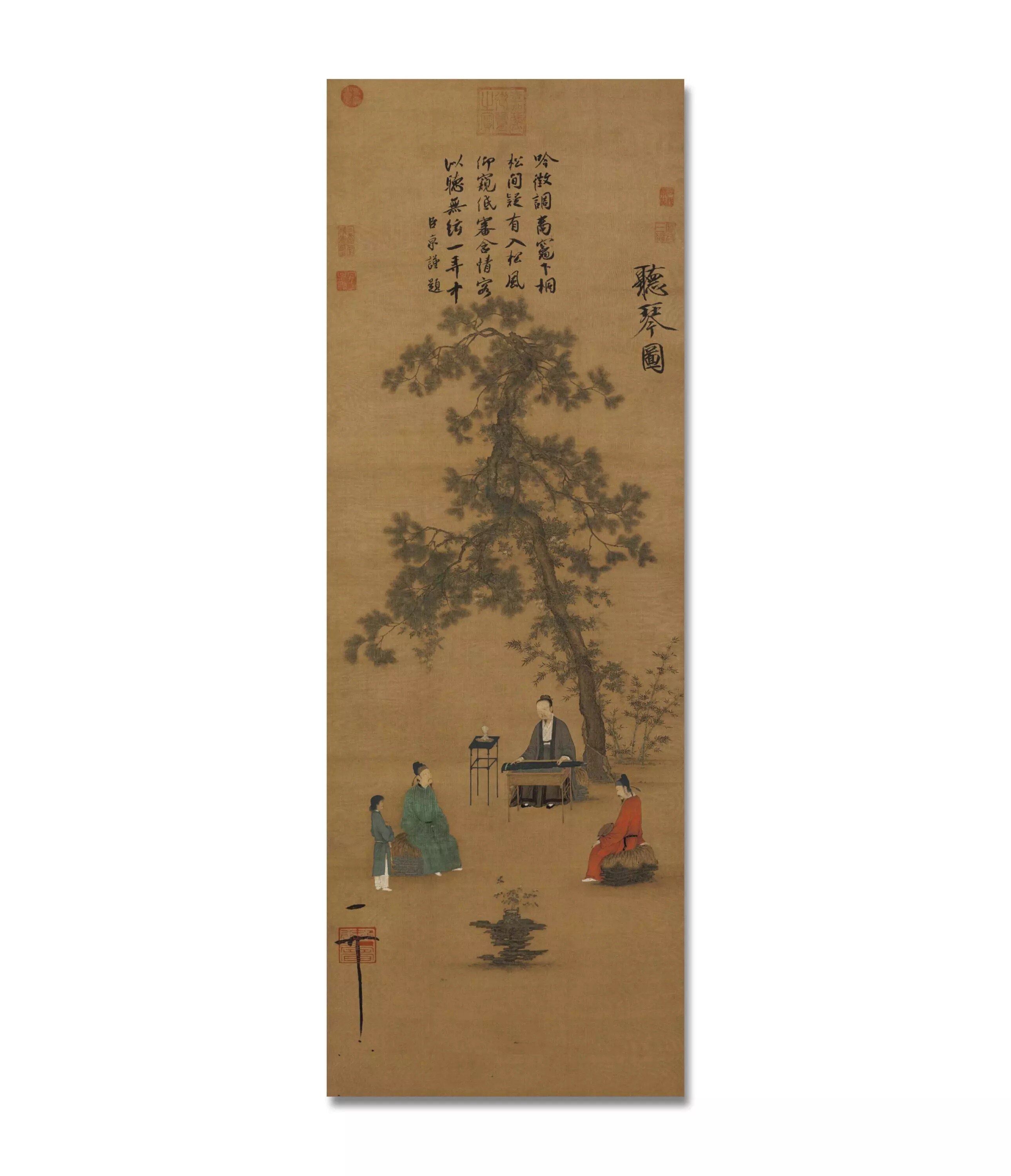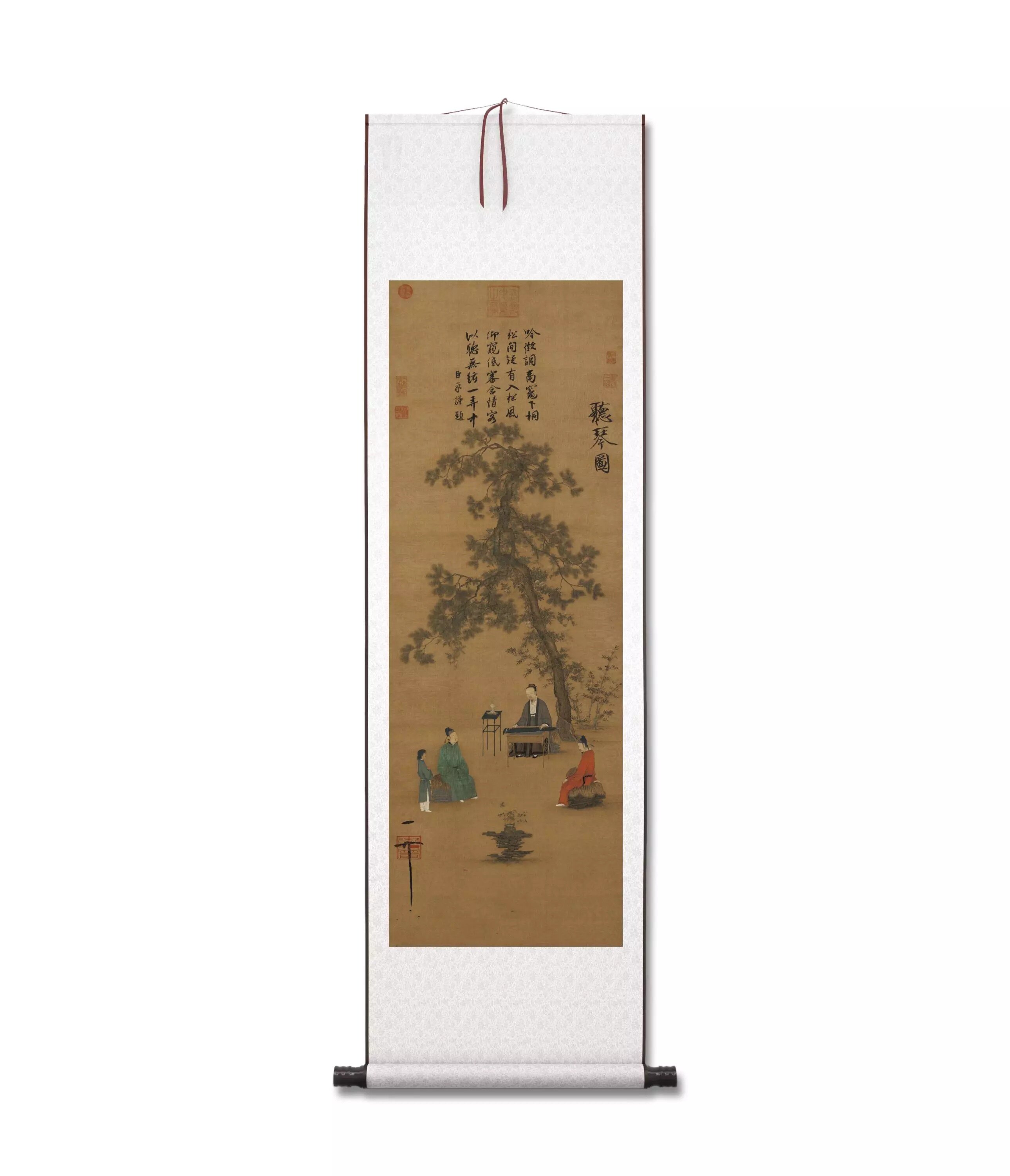 «Слушание Цинь» Чжао Цзи, жикле, репродукция высокой четкости, уменьшенный размер, длина 103 см, ширина 36,25 см, оригинальный большой размер, длина 148 см, ширина 52 см.