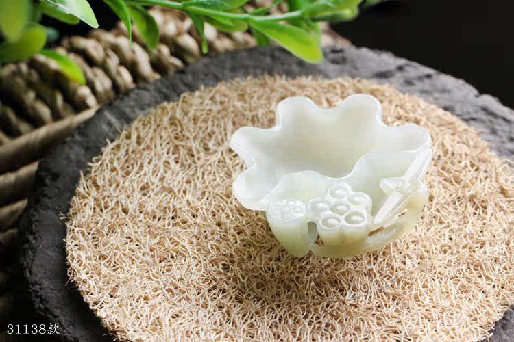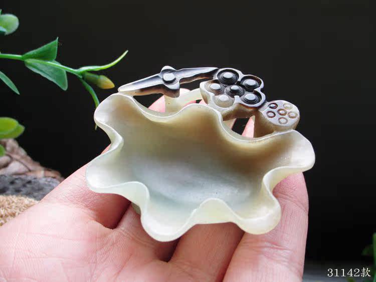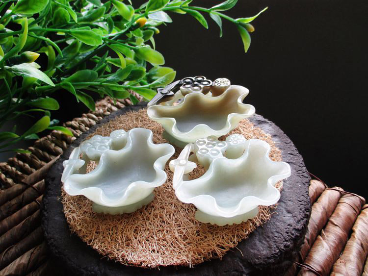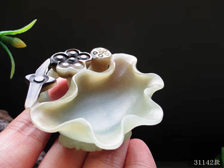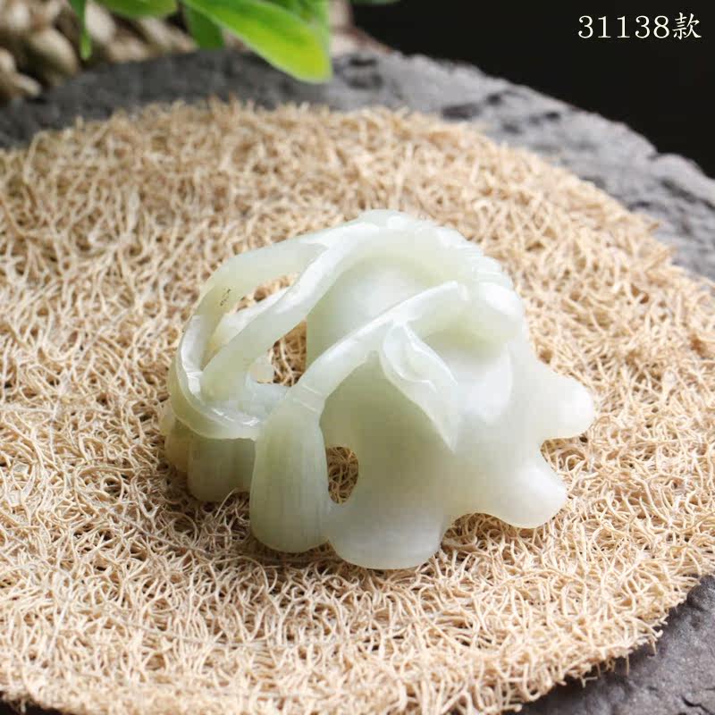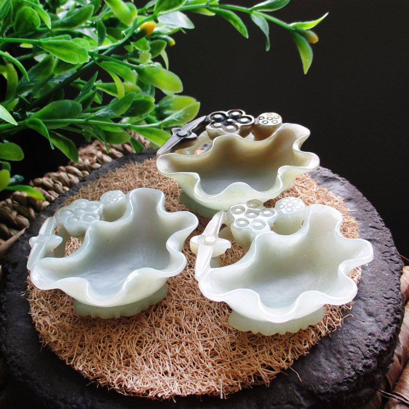 Jayne Chou [Мохе] Античный Синьцзян Хетиан Кенди Грин Белый Джейд Лотос Lotus