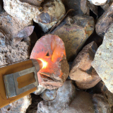 Существуют нерегулярные блоки, почти плоские круглые, цилиндрические (избыточная часть обработки).Красный, оранжево -красный до темно -красный