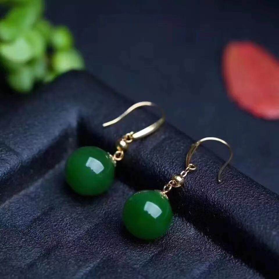 Натуральная яшма из округа Хотан, серьги, длинное украшение-шарик из нефрита, золото 750 пробы, простой и элегантный дизайн
