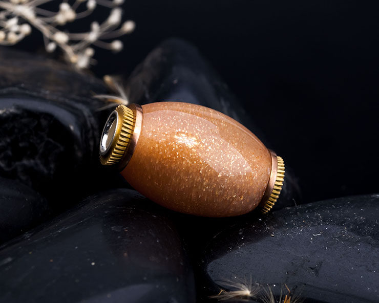 Паровые бусы с оранжевого лунного света:Оранжевая слава разбросана с блестящим золотым песком, а цвет более красивее на солнце.Длинный размер(Серебряная труба)25.6mm,Ширина15.4mm↓
