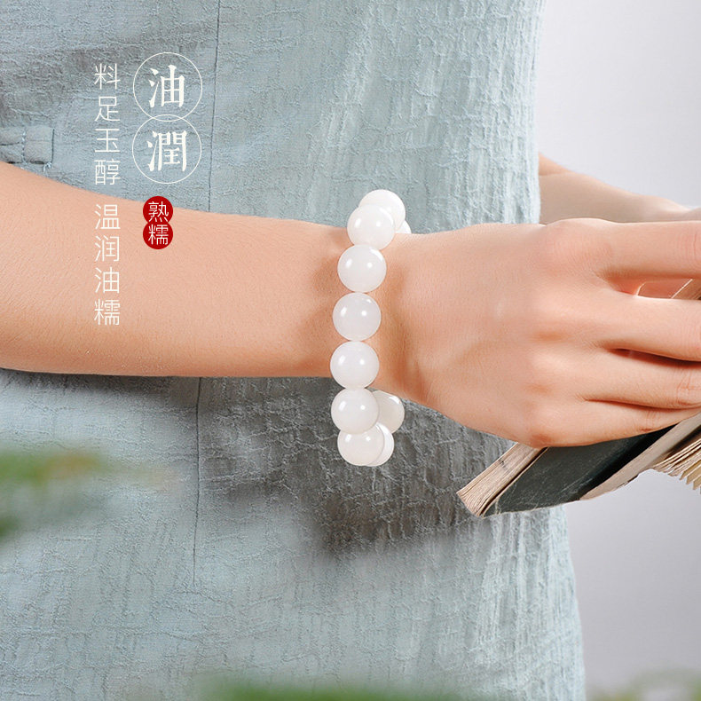Натуральное украшение-шарик из белого нефрита, браслет из бусин