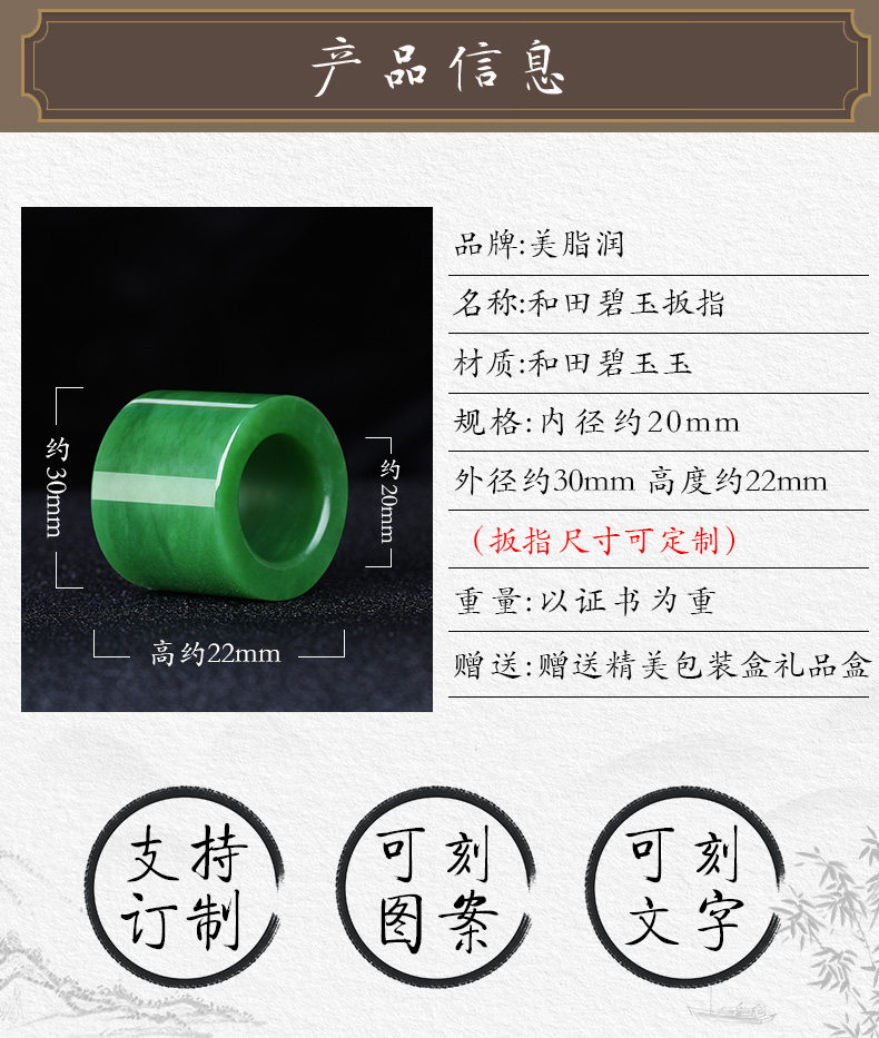 美脂润 Яшма из нефрита, вместительное и большое кольцо, мужской стиль