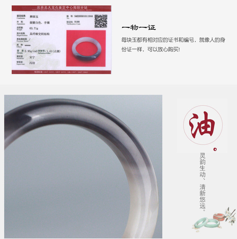 千琢 Браслет из нефрита, 57mm