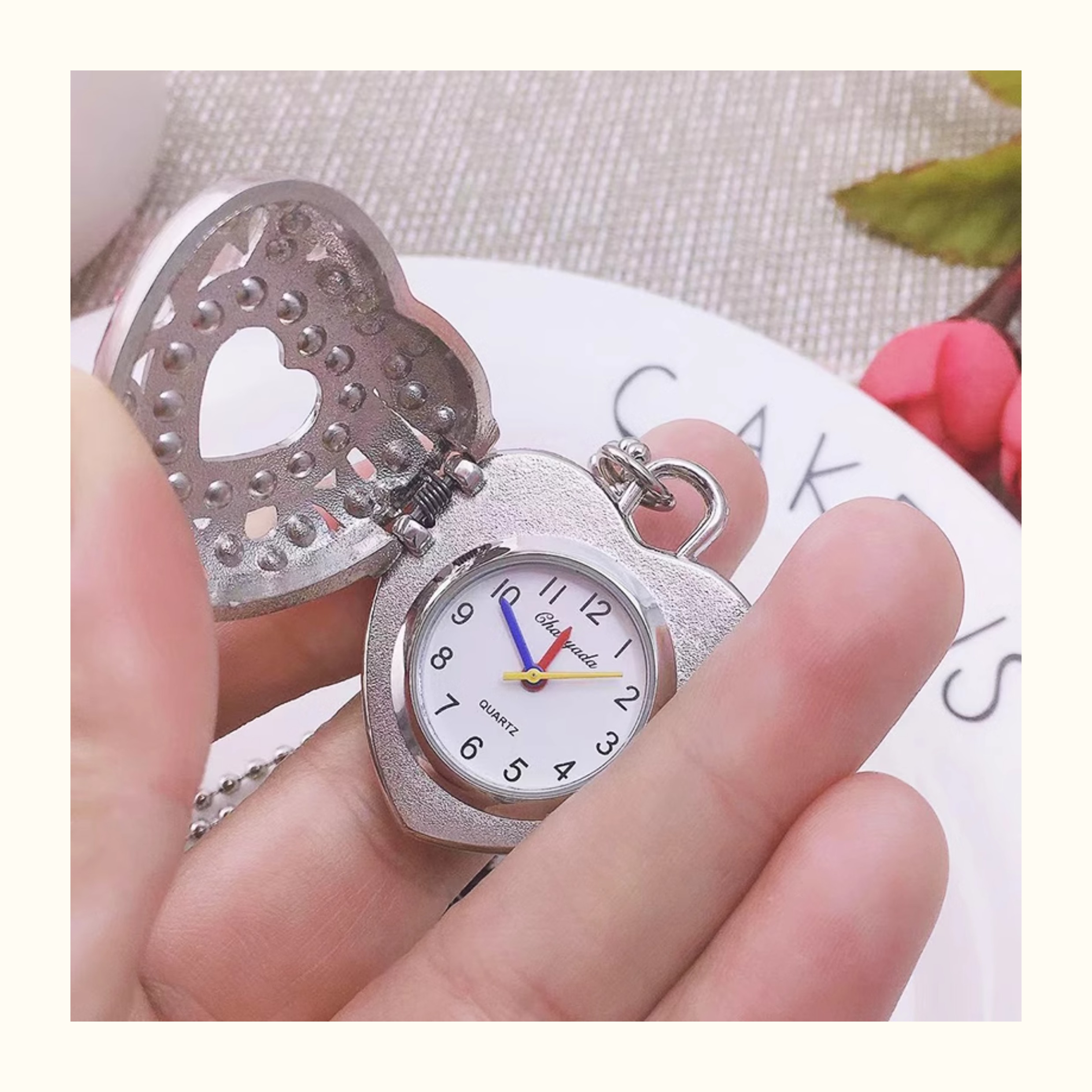 Милые детские мультяшные водонепроницаемые карманные часы в форме сердца