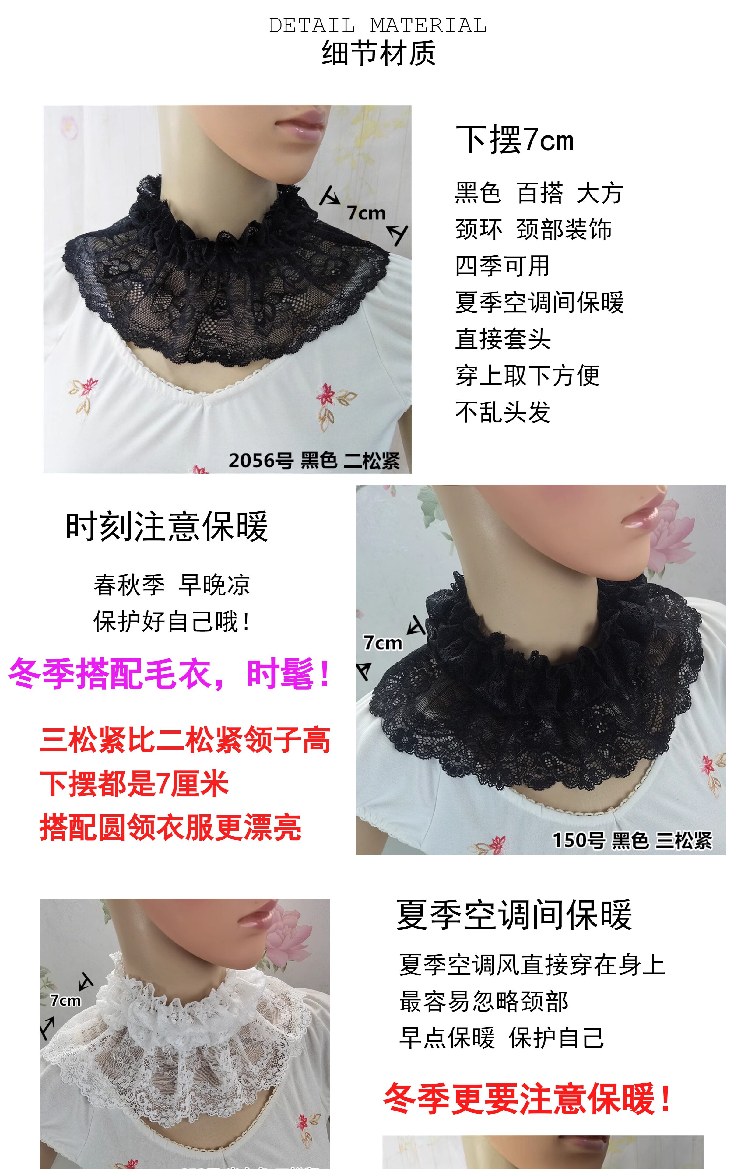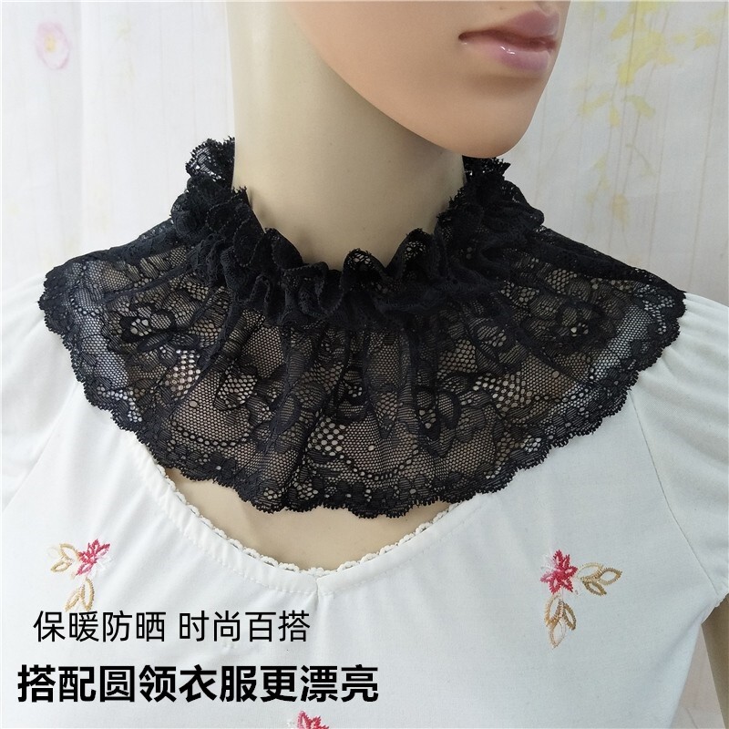 Модный черный удерживающий тепло белый кружевной фальшивый воротник, свитер, в корейском стиле