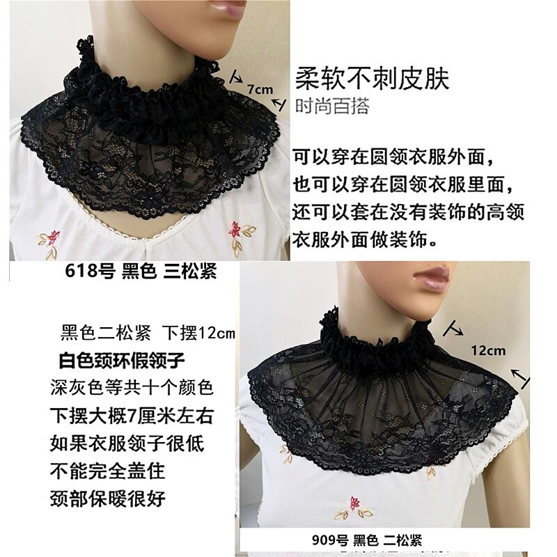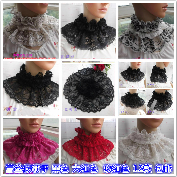 Черный белый красный универсальный ретро кружевной фальшивый воротник для принцессы, удерживающий тепло шарф, шарф-платок, в корейском стиле