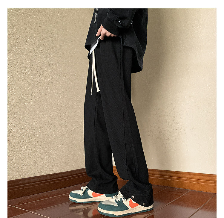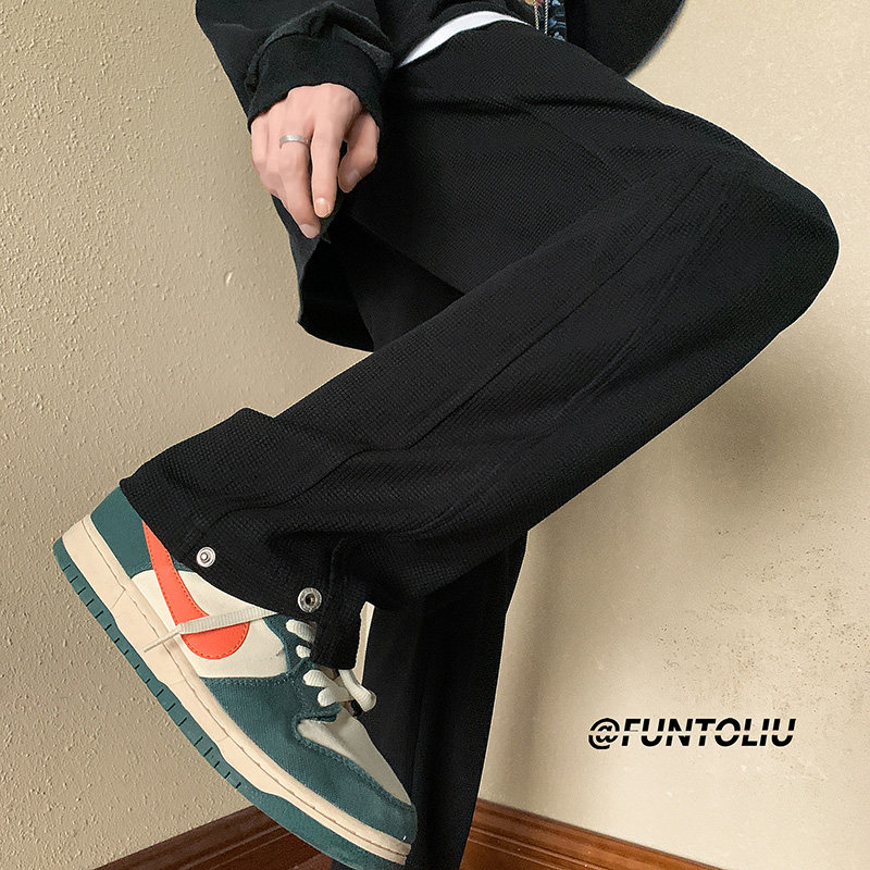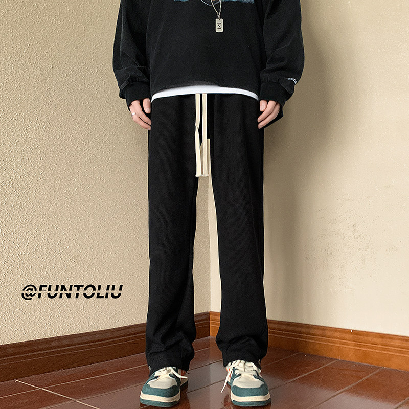 Черные демисезонные штаны, в американском стиле, эластичная талия, свободный прямой крой