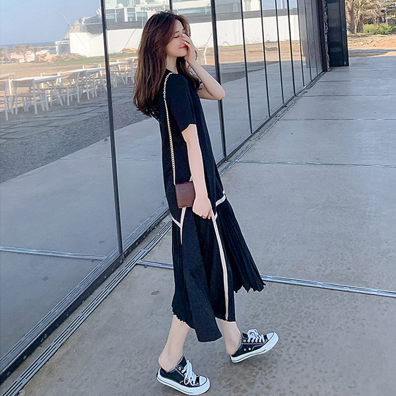 Летнее платье для отдыха, юбка в складку, платье-футболка, коллекция 2023, в корейском стиле