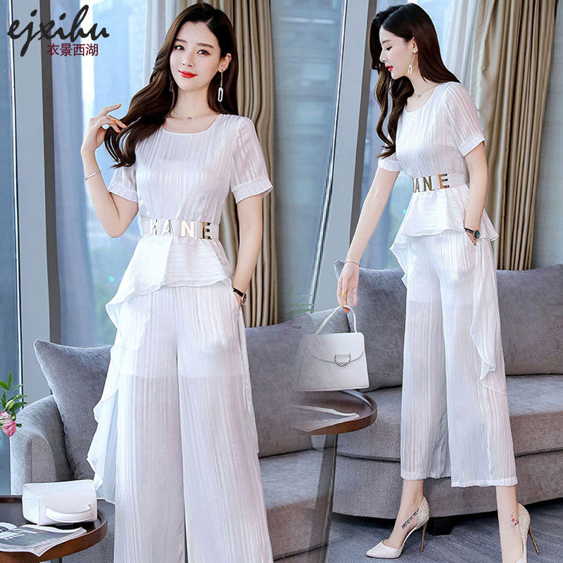 Летняя одежда, шифоновый комбинезон, штаны, комплект, боди, юбка, сезон 2021, яркий броский стиль, по фигуре