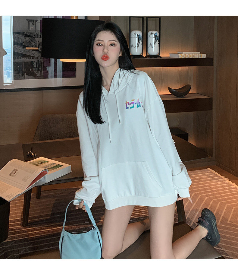 TikTok, толстовка, осенний демисезонный хлопковый лонгслив, длинная куртка, европейский стиль, популярно в интернете, большой размер, средней длины