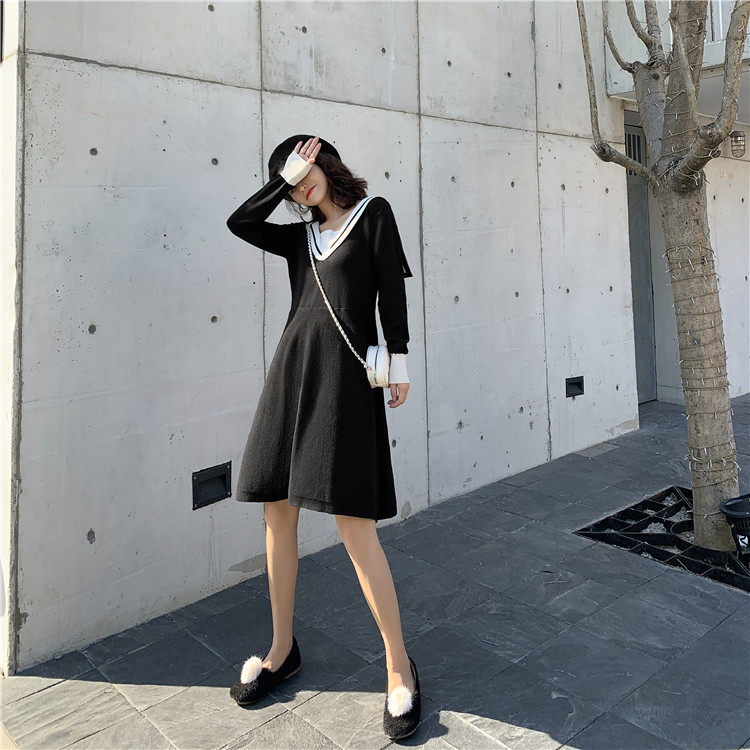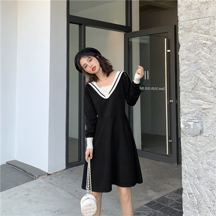 Милое демисезонное военно-морское платье, 2020 года, А-силуэт