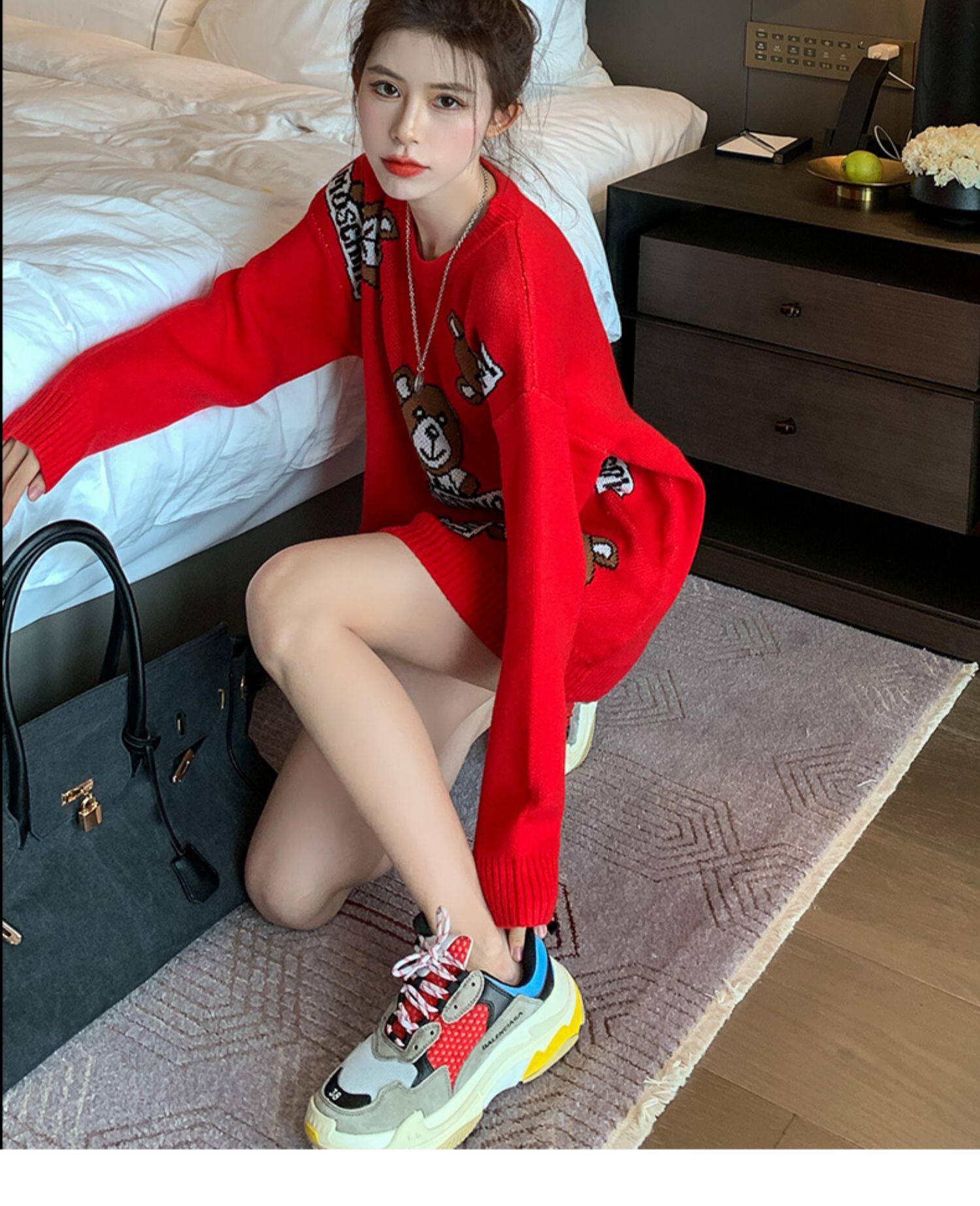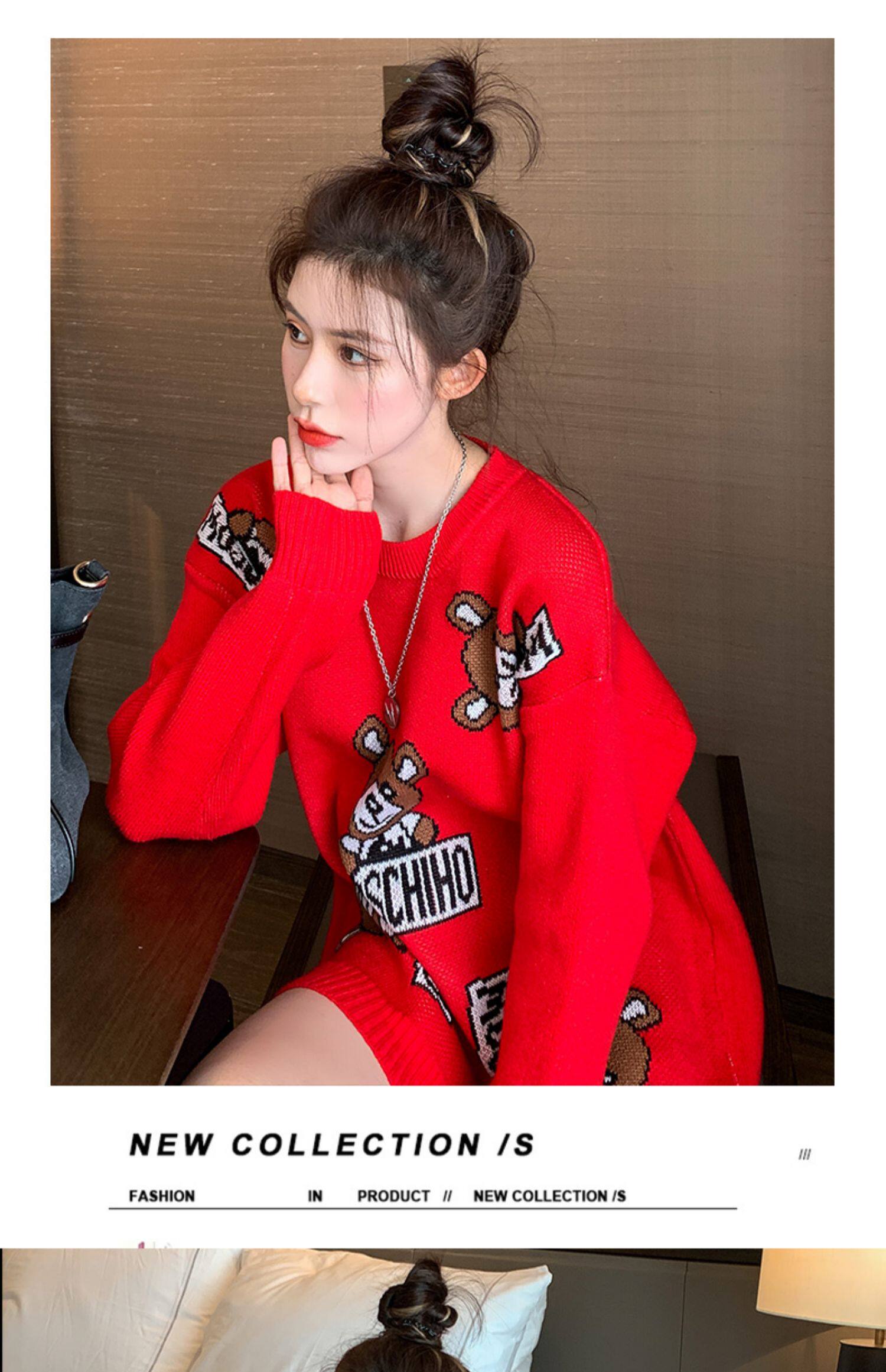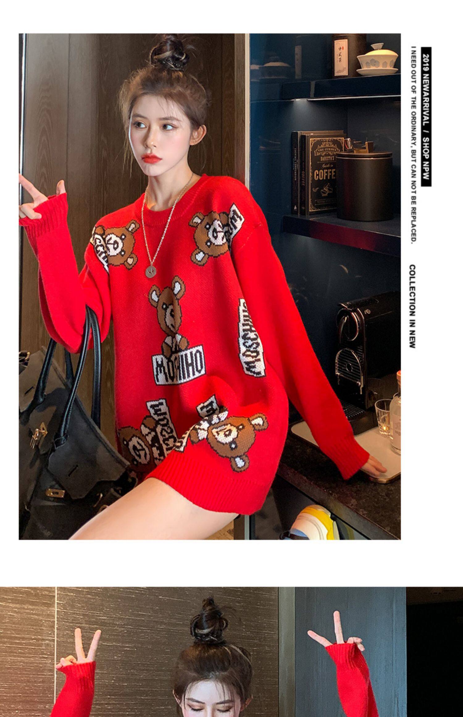 Свитер, осенняя красная модная куртка, коллекция 2021, увеличенная толщина, в западном стиле