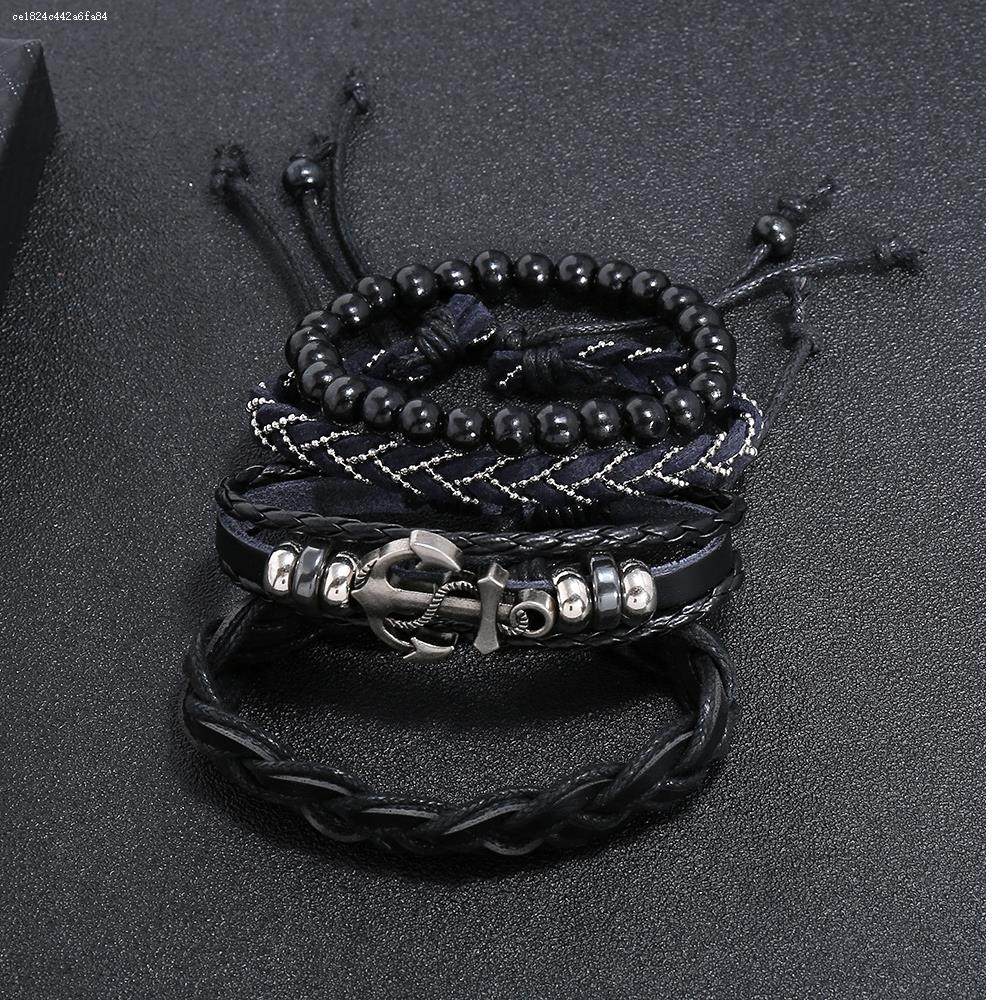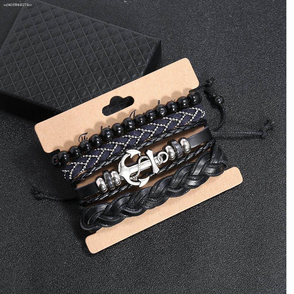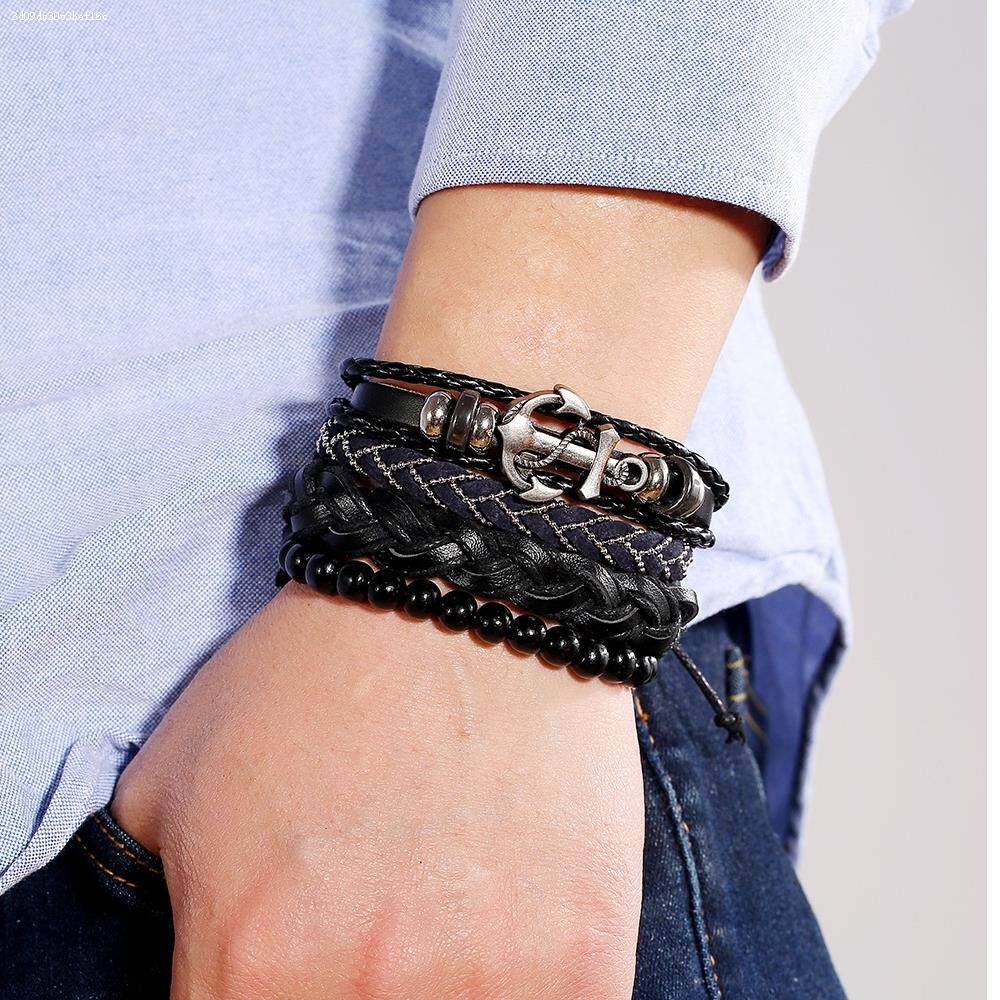 Ретро кожаный плетеный аксессуар ручной работы, креативный браслет, в стиле панк, мужской стиль