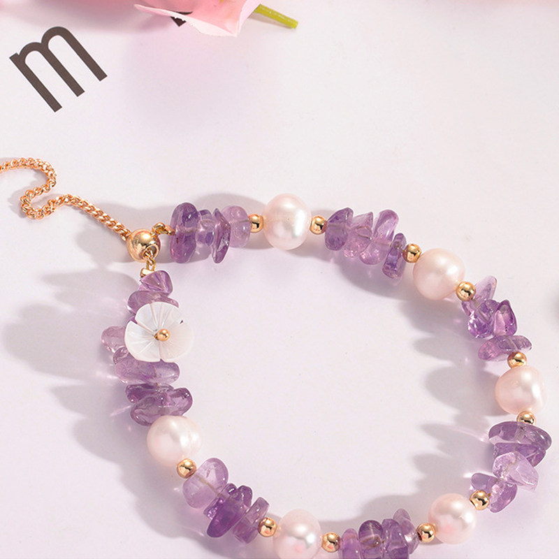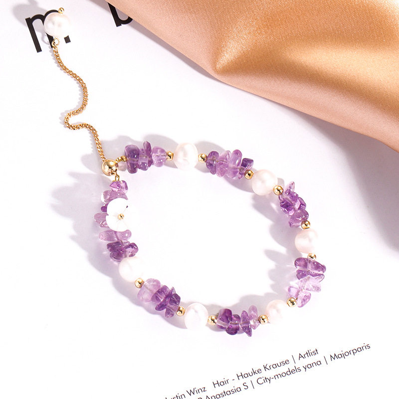 Браслет из кварца с аметистом, браслет из бисера из жемчуга, свежее небольшое дизайнерское ювелирное украшение, тренд сезона